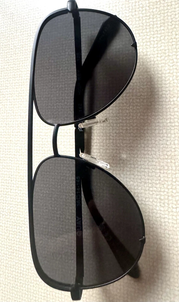Model:Quay Australia High Key MiniLens Technology:PolarizedStyle:AviatorPersonalized:NoLens Material:PolycarbonateEstado del artículo:UsadoTheme:Classic, Designer, MetalType:SunglassesPattern:SolidBrand:Quay AustraliaDepartment:Unisex AdultsVintage:NoFeatures:OversizedUV Protection:UV400Country/Region of Manufacture:AustraliaFrame Material:MetalFrame Color:BlackLens Color:Black