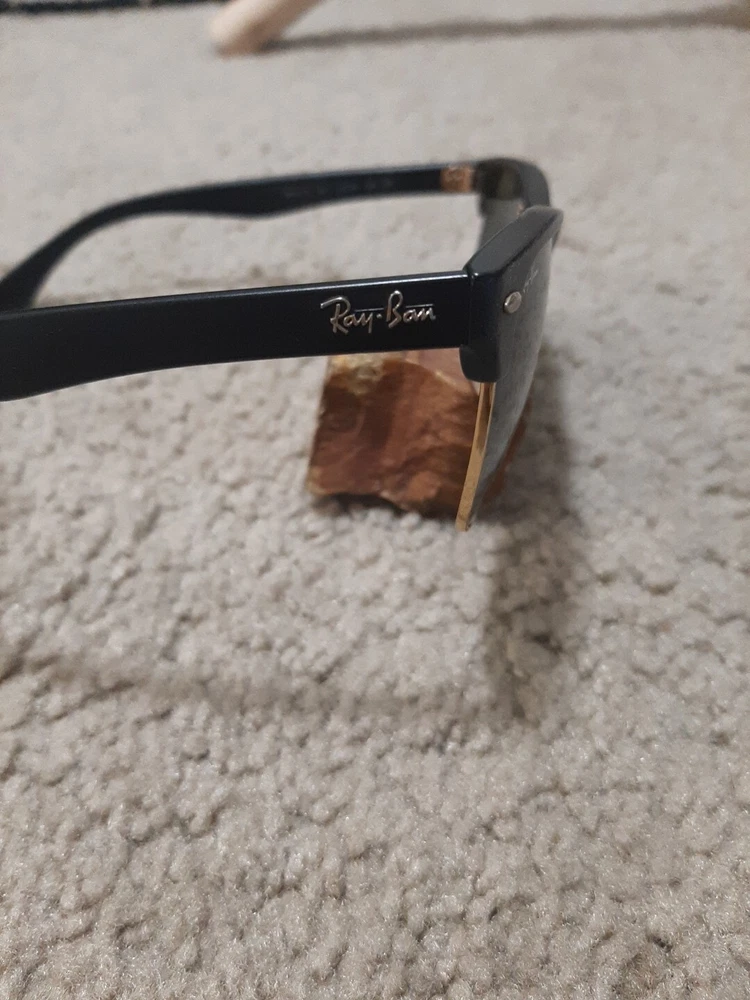 Quality Ray-Ban unisex Sunglasses. Very sharp looking gold and black Frames. Some scratches on the lenses, but very minimal.