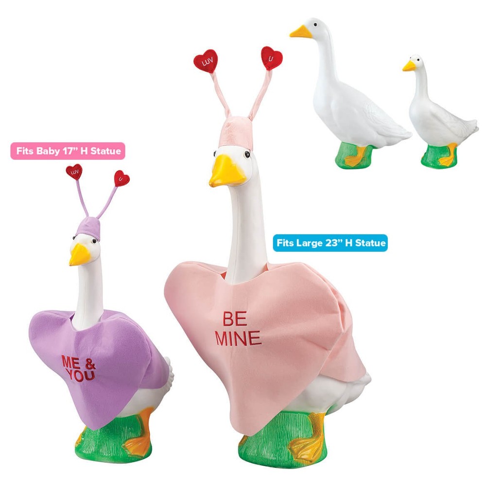 An official Gaggleville Goose outfit bundle!Celebrate love this Valentine's Day with the Conversation Heart Duo Goose, Baby, and Outfit Bundle by Gaggleville! This sweet set includes a large 23" high goose statue, a baby 17" high goose statue, and matching Conversation Heart outfits for each. The large goose outfit features a pink "Be Mine" design with a "Luv U" cap, while the baby goose outfit sports a purple "Me & You" heart with the same playful cap. These festive costumes are perfect for spreading Valentine's Day cheer, turning your geese into delightful holiday sweethearts. Outdoor decor made from polyester, for indoor/protected outdoor use. Imported. By Gaggleville. Powered by Frooition Buy one, get one at 15% off! On All Products Storewide SALE Holidays Home Kitchen Office Health Beauty Apparel Jewelry & Accessories Outdoor Entertainment Candy Shoppe Intimacy Automotive Accessories Gaggleville Conversation Heart Duo Goose, Baby and Outfits Gaggleville Goose Conversation Heart Bundle, Includes 1 Large 23" White Goose, 1 Item Description An official GagglevilleTM Goose outfit bundle! Celebrate love this Valentine's Day with the Conversation Heart Duo Goose, Baby, and Outfit Bundle by GagglevilleTM! This sweet set includes a large 23" high goose statue, a baby 17" high goose statue, and matching Conversation Heart outfits for each. The large outfit features a pink "Be Mine" design with a "Luv U" cap, while the baby outfit sports a purple "Me & You" heart with the same playful cap. These festive costumes are perfect for spreading Valentine's Day cheer, turning your geese into delightful holiday sweethearts. Made from polyester, for indoor/protected outdoor use. Imported. By GagglevilleTM. About Us About Us Payment Shipping Customer Service About Us Welcome to Fox Valley Traders on ebay, where we specialize in providing an evolving selection of one-of-a-kind products at affordable prices. With roots dating back to 1935, our knowledgeable team is dedicated to bringing you high-quality, functional, and unique household products and gifts that won't break the bank. Our mission is to continuously innovate and improve items based on customer needs and industry trends. We are the proud owners and developers of multiple brands, including Miles Kimball, Walter Drake, Easy Comforts, Holiday Peak, OakRidge, LivingSure, Exposures, NativeRemedies and PetAlive. Learn more about these brands and their product offerings below. We invite you to spend some time in our ebay storefront. Shop around, explore our brands, and read what other satisfied customers are saying. Let us know how we can help - we would be honored to earn your business! Miles Kimball specializes in a wide variety of festive holiday decorations, handy kitchen gadgets, storage and organization solutions, gardening supplies, home décor, table covers, pets supplies, and gifts for everyone! We strive to delight our customers with hard-to-find gadgets and personalized gifts that are unique, unusual, and unexpected. Walter Drake has an extensive line of products that are functional problem-solvers for your home. Find great values in kitchen gadgets, cookware and bakeware, lawn and garden, bedding, calendars, and office supplies. Easy Comforts strives to make difficult times more comfortable, while helping you (or someone you care about) find solutions to life's physical challenges. Discover value-priced health and personal care items including home security, bathroom safety, daily living aids, diabetic socks, dressing aids, incontinence solutions, and pain remedies. Holiday Peak is your one-stop holiday shop! Find seasonal décor to bring a warm and inviting holiday atmosphere to your home all year. We offer pre-lit, fully decorated Christmas trees, unique Christmas tree ornaments and heartwarming Christmas cards for the winter season. Keep your festive spirit alive all year with our seasonal indoor and outdoor decor for Valentine's Day, St. Patrick's Day, Easter, patriotic and fall seasons . OakRidge offers top quality home items at an affordable price. Bring the warmth and comfort of home to any space with our exclusive bed linens, bath essentials, small furniture, floral décor, and other home furnishings. LivingSure is on a mission to develop products that will help keep you safe, secure, and independent both inside your home and out. Find smart solutions for personal safety, home security, emergency radios, auto blankets, flashlights, ladders, step-stools, and more. Exposures knows the value of special moments and experiences and wants to help you preserve them forever. Celebrate life's memories with our exclusive photo albums, frames, gifts, and home décor. NativeRemedies and PetAlive offer homeopathic health and wellness products for your whole family, including your pets! Enjoy our quality herbal and natural remedies for treating common ailments. Payment Payment We accept PayPal payments only. Sales Tax: For shipments to Wisconsin addresses, we are required by State law to collect Sales Tax. Shipping Shipping In order to keep things simple for you, Fox Valley Traders offers $1.99 shipping on Ebay for all Continental US Street and PO Box addresses. We use standard shipping for all orders in the continental US. Please allow 7-9 days for delivery Customer Service Customer Service If you have any questions about the item, please click the "Ask a question" link below. All returns must be made within 45 days from the date of shipment. We carefully inspect orders prior to shipment; upon receipt, please inspect your purchase and notify us of any damage. We will arrange for a prompt replacement. Shipping charges will not be reimbursed. Please contact us through our Ebay account for information on how to return an item. *All returns will be accepted unless otherwise noted in item description.* More Items! View more great items Gaggleville Reindeer Baby Goose Outfit, Fits Baby 17" H Statue, by Fox Valley Tr $27.97 Gaggleville Conversation H