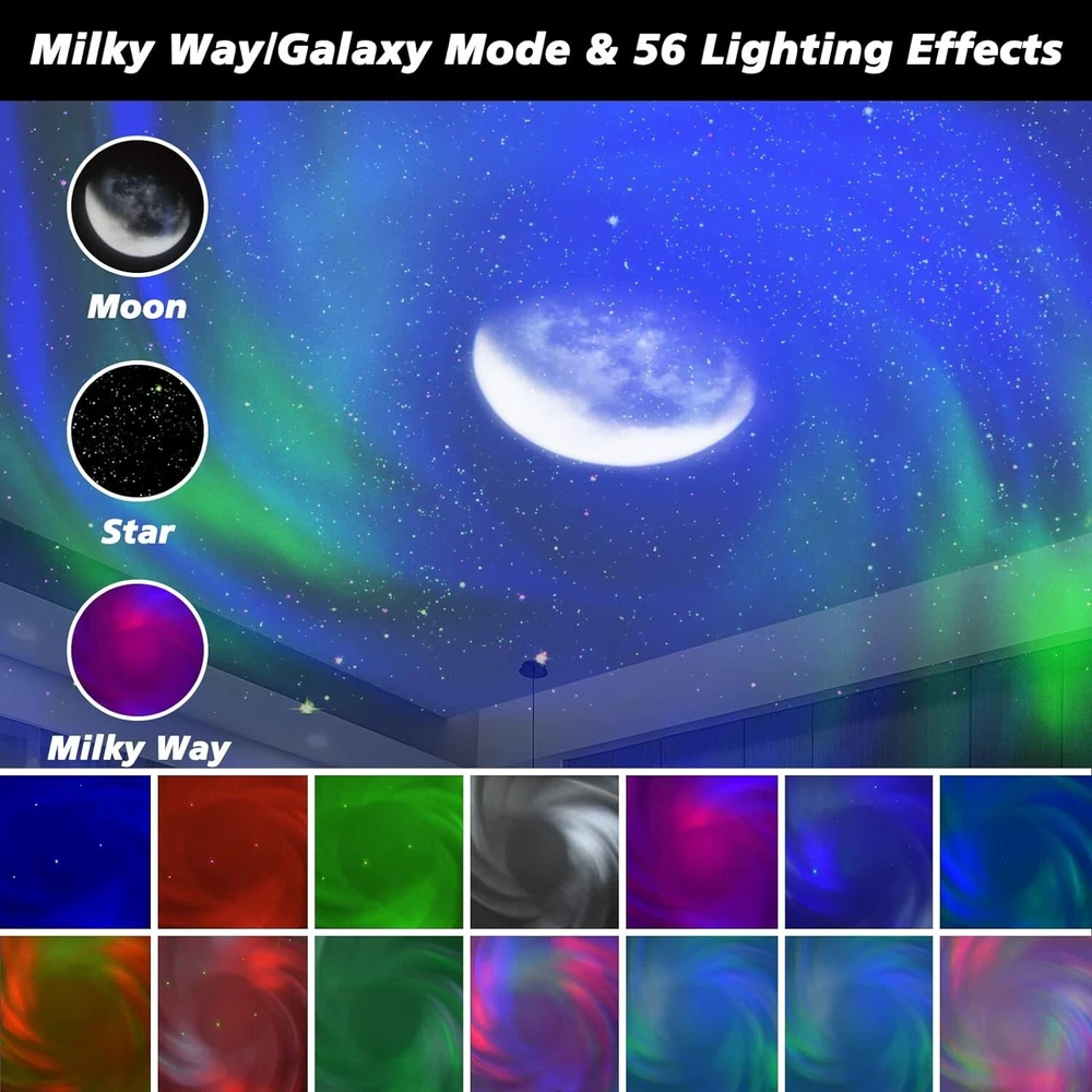 - Brand New - Never Used - Questions: Feel free to ask any Questions - BOX: Never Opened - DESCRIPTION: • 🌟【Aurora Projector+Galaxy Projector】Experience the best of both worlds with the night light Projector, featuring dual projection lenses for Aurora Borealis and Galaxy modes. With 14 RGB colors, star and moon patterns, and a total of 56 mesmerizing lighting effects, you can transform any room into a mystical wonderland. In Aurora mode, you'll be transported to the North Pole with its mysterious aura, and in Galaxy mode, you'll feel like you're floating among vibrant galaxies in the Milky Way. * 🌟【Immersive Projection &Stunning Scenes】Experience the full universe in your own room with our projector. The upgraded projection capabilities allow for a wide area coverage, creating a mesmerizing display of flowing aurora borealis and breathtaking galactic scenes. Get lost in the romantic and peaceful atmosphere, leaving all your worries behind. Plus, the stunning imagery can also ignite the curiosity and imagination of children, inspiring them to explore the wonders of the vast night sky. * 🌟【Remote Control &Timer Function】Take control of your relaxation with our Galaxy Projector's remote control. Easily adjust the Aurora and Milky Way modes and choose the perfect lighting mode and brightness level with just a click. With the auto-off timer, you can set the projector to turn off after 0.5h/1h/2h of use-or leave it running and it will automatically turn off after 4h. This ensures a peaceful and cozy environment for you and your little ones to drift off to sleep quickly and soundly. * 🌟【5 Relaxing White Noise & 7 Brightness Levels】Enjoy a peaceful escape with our starlight projector's 5 natural sound options: insects, birds chirping, gurgling water, fan white noise, and thunder. These soothing sounds help combat insomnia and anxiety, while also calming crying babies. With 7 levels of brightness adjustment, you can easily create the perfect ambiance for any occasion. Get ready to be transported to a serene and natural world in the comfort of your own home. * 🌟【Perfect Gift & Quality Service】Our galaxy light is both a stunning decoration and a practical tool for any indoor space. Whether you're using it for photos, parties, or relaxation, it creates the perfect atmosphere. It also makes for a creative gift that can inspire the curiosity of kids. With certifications from FCC, RoHS, and CE, you can trust our projectors are safe and reliable.If you have any questions, we are dedicated to providing you with reliable and effective online solutions. - OFFERS: Reasonable offers are considered, LOWBALLERS, Best price and Lowest askers will be ignored - all sales final/no refunds/ no exchanges/ no returns - Disclaimer: I do not own the brand's trademarks, logos, pictures, or products posted. I do not intend to infringe on copyright. I find such content available on the internet. Contents are considered fair use. -Flying Saucer Galaxy Projector Aurora Projector 2-in-1, Star Projector with 56 Light Effects and 5 White Noise, Night Light Projector for Kids Adults Home Theater, Ceiling, Birthday Valentines Gift
