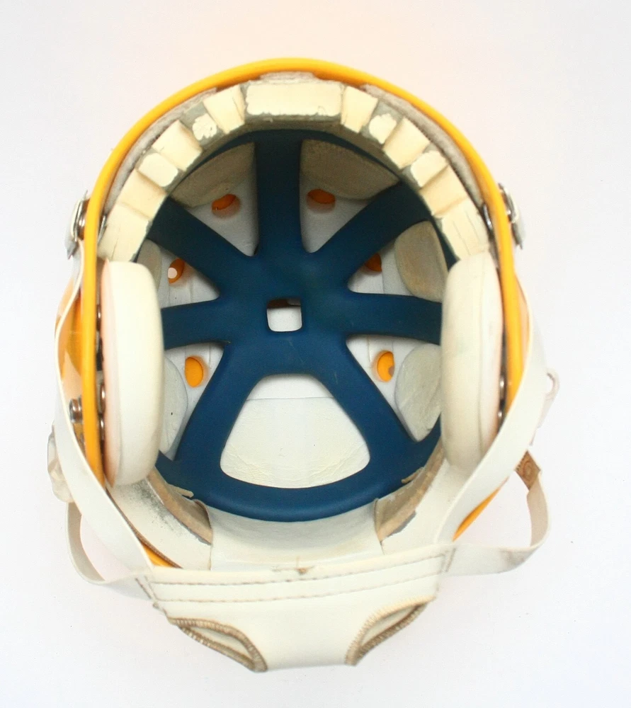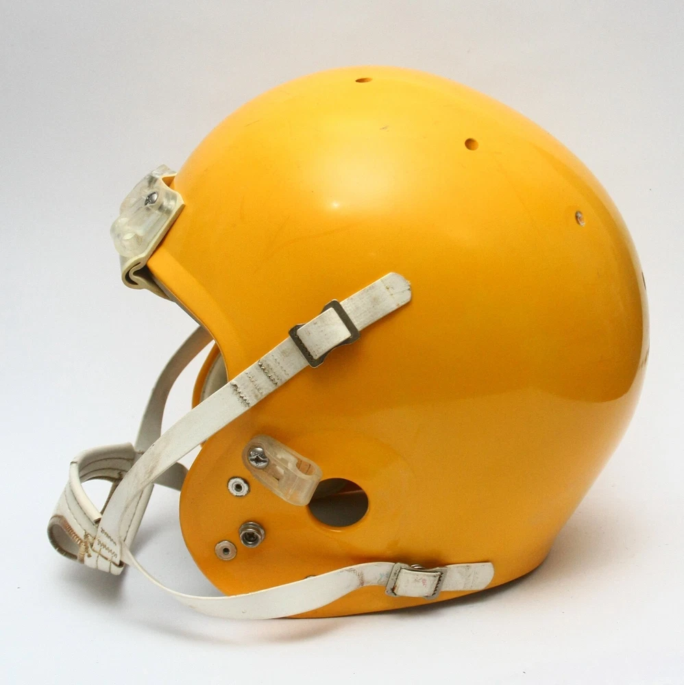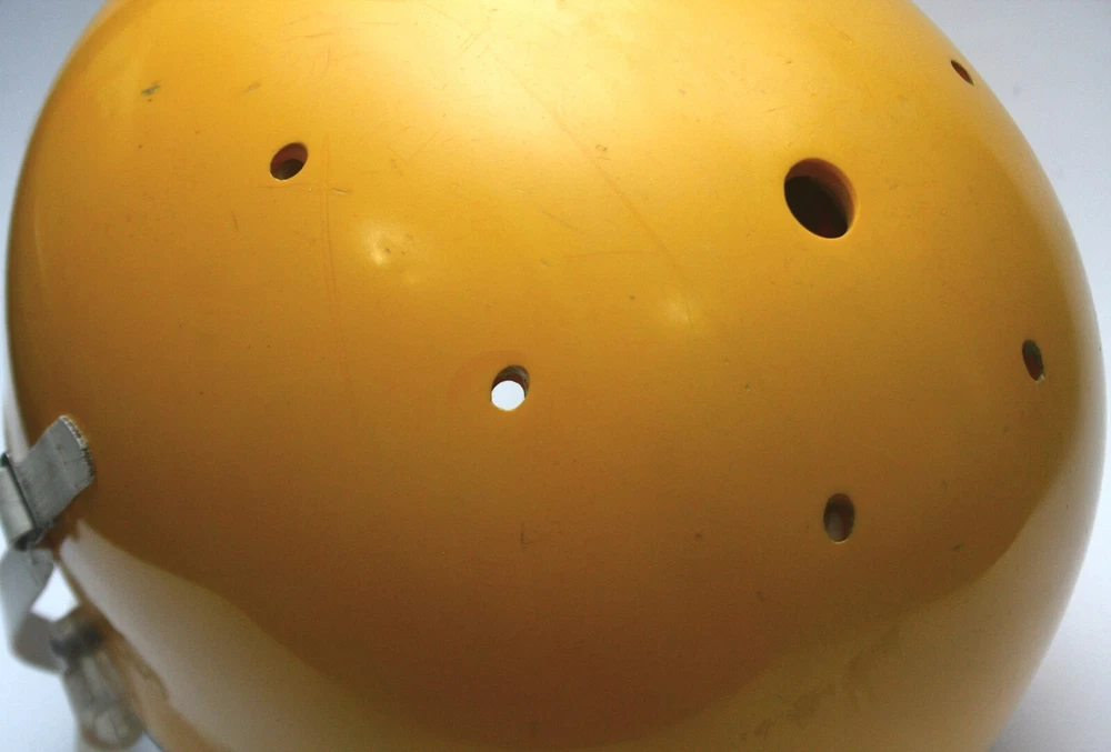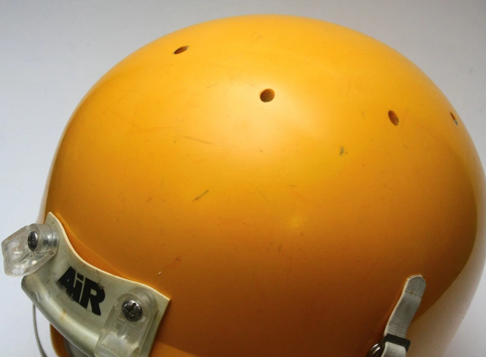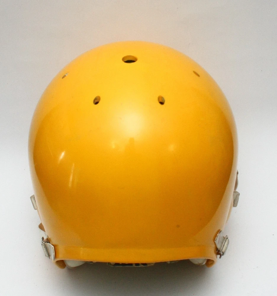 Game Used Schutt Pro Air II MEDIUM Football Helmet. Original unpainted Packers yellow shell. Used, some minor scratches, nicks and dings, interior padding has wear and is slightly discolored. Comes with vintage Schutt four point chinstrap, facemask clips and hardware. Perfect for a Green Bay Packers or LSU Tigers throwback helmet. Combine Shipping available for multiple purchases. We have the largest game used helmets (NFL, NCAA), helmets (vintage and modern), vintage and modern facemasks, helmet parts and football helmet decals. We also offer restoration and painting service for your helmets. Email us for anything you need, we will reply to your inquiries and requests.