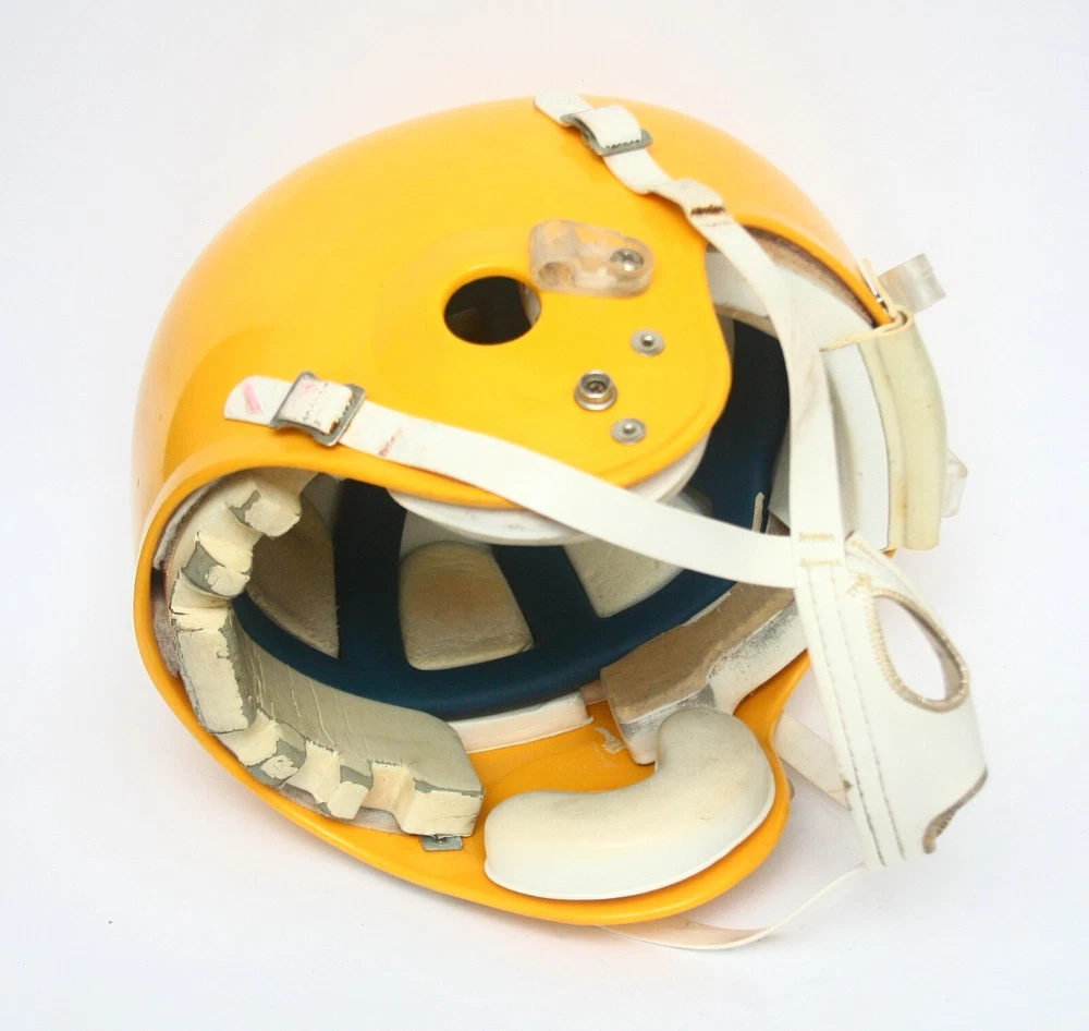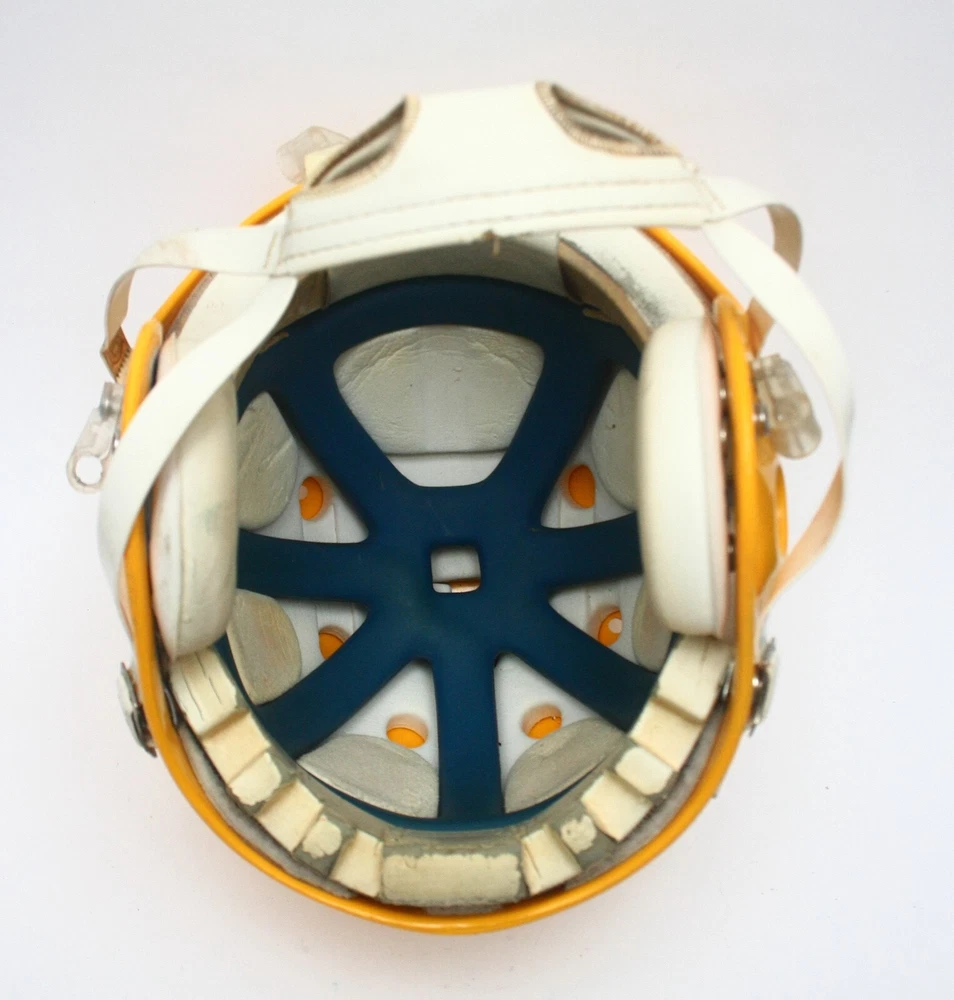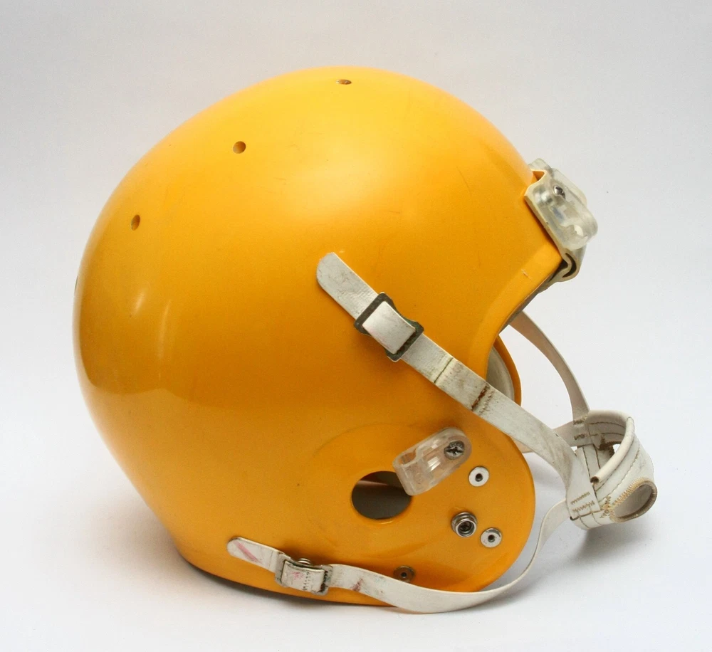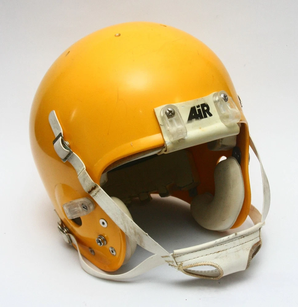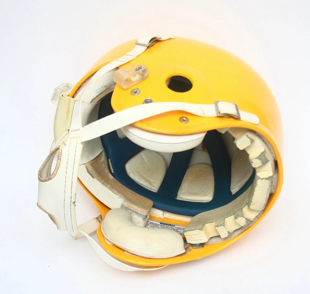 Game Used Schutt Pro Air II MEDIUM Football Helmet. Original unpainted Packers yellow shell. Used, some minor scratches, nicks and dings, interior padding has wear and is slightly discolored. Comes with vintage Schutt four point chinstrap, facemask clips and hardware. Perfect for a Green Bay Packers or LSU Tigers throwback helmet. Combine Shipping available for multiple purchases. We have the largest game used helmets (NFL, NCAA), helmets (vintage and modern), vintage and modern facemasks, helmet parts and football helmet decals. We also offer restoration and painting service for your helmets. Email us for anything you need, we will reply to your inquiries and requests.