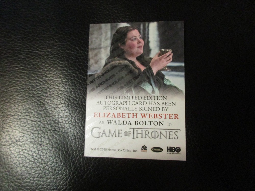 This listing is for o ne card as listed in the title and shown in the image. We do combine shipping on multiple purchases to actual shipping costs, please wait for a combined invoice before paying. This will save you a great deal of money versus buying cards separately from multiple sellers. If you use the SHOPPING CART, you can click on the "REQUEST TOTAL FROM SELLER" button in the upper right after you've added all of the items to your cart. REMEMBER, our shipping prices INCLUDE full insurance to protect your investment during shipment against damage or loss. Purchasing more than one item? Please wait for a combined invoice from us since we only charge ACTUAL shipping costs to get your order to you safely! IMPORTANT POLICIES AND INFORMATION: We aim to be transparent with our business practices and reading the information below will be of great help to you when placing an order with us. 1) SHIPPING COSTS, PACKAGING, and INSURANCE : While our shipping prices may seem a bit high, we have found over the last decade that doing things correctly is much better than doing things cheaply. When you order from us you will find that your order will come to you well packaged, whether its a single autograph, a complete base set, a binder, a sealed box of cards, or a master set. In order to pack things correctly and safely, that adds costs above the "postage price". All orders also ship via a trackable shipping method, we do not ship via a letter envelope with a stamp. In the extremely rare event that an order is damaged, the shipping costs have an extra layer of protection built in, which is insurance through U-PIC to cover your full purchase price to allow for hassle free replacements. 2) ITEM CONDITION and RETURNS : All of the items we sell are in NEAR MINT condition or BETTER unless it is specifically otherwise noted in the listing description. The images shown with the listing are stock photos representative of the item we will ship you, including being representative of the condition of the item you will receive. We only accept returns on a case-by-case basis due to the fact that once you make a purchase and we ship it, we have expended time and money to fullfill your order that we do not get compensated for if you change your mind and want to return the product. If there is a problem with your order (such as missing an item or receiving an incorrect item) we will correct the issue promptly if you contact us. If your order is damaged, as stated above we can promptly ship you a replacement once we initiate the insurance claim process. If you decide you don't want the item after we've shipped it, a return may be authorized but the item must be returned in original condition, no shipping costs will be refunded, and we may withhold 10% of the purchase price. 3) INTERNATIONAL BUYERS : Nearly half of our business comes from our friends outside of the United States and we welcome orders from around the world! Rest assured, your order will ship as safely and securely as orders within the US in order to prevent damage or loss during transit. They are also insured so in the rare event of damage or loss, we can quickly get a replacement out to you. We are not responsible for any import/customs fees you may incur in your country to receive your package from us however we make every effort to minimize those fees for you (including NOT placing an invoice inside of the package among other things). 4) PRE-ORDERS : We generally begin accepting pre-orders for products about 30 days from the release date. In the event a product release is pushed back and your order will not ship within 30 days of your payment, we will cancel and refund your order at your request. If an item is not in stock and is a pre-order, this will be clearly noted in the item's description along with the current release date. ABOUT US: We have been in business since 1997 serving the gaming and trading card collecting community. We started out as an online mail order company and grew to become a brick and mortar store in 2011. We are a distributor for Rittenhouse Archives and specialize in their entire product line, including sealed boxes/cases, hand assembled base, insert, mini-master, and master sets, and also singles such as autographs and sketches! We strive for top notch customer service to earn loyal customers who will return again and again to complete their collections! We also strive to be the most competitive company in the market and will match or beat ANY competitor's price! Our history... We first began business under the name Picard's Grand Auctions and then our new name in 2004 when we moved to the Bushkill Township-Nazareth area. And yes, we are named after a geographical place and not politically or otherwise oriented! For most of our history, we were a mail order only company. At the beginning, we specialized in only selling Decipher's Star Trek Customizable Card Game, eventually expanding to the Star Wars CCG and later the Lord of the Rings TCG. In 2006, we added Star Trek trading card products by Rittenhouse Archives to our catalog and then expanded to their entire product line. Finally in 2011 we opened a brick and mortar retail location and grew from 1 employee to 7 in order to keep up with the steady stream of orders!
