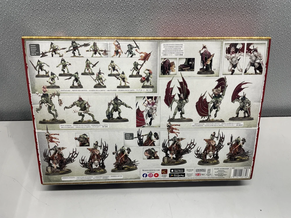 ebay template Games Workshop Warhammer AOS Flesh-Eater Courts: Charnel Grand Jury Battleforce Item Specifics: Format: Miniatures Color: Various Title: Games Workshop Warhammer AOS Flesh-Eater Courts: Charnelgrand Jury Battleforce Condition: New-- Sealed in box; Light Dirt and dust from warehouse storage; Light Wear on sides of box from warehouse storage; see photos Features: Citadel Miniatures Unpainted Cargo Largo is not sponsored by or affiliated with the brand associated with the product being sold. Redeemable Codes: *We do not guarantee the validity of any redeemable codes included in this item* This item cannot be shipped out of the United States! Cargo Largo is not sponsored by or affiliated with the brand associated with the product being sold. Contact Seller If you have any questions, please use the “Contact Seller” link in the upper right section of the listing. Our business hours are 8:00 AM - 3:30 PM Monday-Friday (Central Time). Sales completed and emails received after normal business hours may be handled the next business day. Shipping Policy We ONLY ship within the lower 48 United States. We ONLY ship to the address selected by the customer at checkout. Buyers MAY NOT arrange their own shipping. ALL orders with total value of $250 or more WILL require a delivery signature. For this item, we DO NOT offer combined shipping with other listings. Location We offer local pickup for all our eBay auction items. To request local pickup for items you have won, please send us a message asking for “pick up” and we will send you an eBay invoice with your total. All local pickup orders MUST be paid within 4 DAYS after the listing ended per eBay policy. The payment total will include Missouri sales tax AND a $4 handling fee per item. Non-Missouri residents will need to pay IN PERSON (credit/debit cards only) within 4 days after the listing ended. Buy It Now items are NOT eligible for local pickup. Paid items must be picked up within 10 DAYS after the end of the listing. If not, your order will be cancelled and refunded. Social distancing policies WILL be enforced during pickups. Local Pickup Location 7460 Stadium Drive Kansas City, MO 64129 Pickup Hours SUNDAY MONDAY TUESDAY WEDNESDAY THURSDAY FRIDAY SATURDAY CLOSED 11am-6pm 7:30am-4pm CLOSED 7:30am-4pm 7:30am-6pm CLOSED Return Policy We are not an authorized dealer of this product and any warranty included with the product may not be honored by the manufacturer. If you believe that the item purchased from us does not match the item description, or if your item was damaged during transit, please contact us to discuss return and refund options. In order to initiate the refund process, buyer must contact us within 30 Days of receipt of item. All returns will require a return authorization. Please note that we will only pay return shipping if our listing does not accurately reflect the specifications or condition of the item received. If you wish to return an item for any other reason, we will accept a return on MOST items, provided that the item is returned to us in the same condition and within 30 Days. This applies to both the item and retail packaging. Buyer will be responsible for both original and return shipping charges Seller will initiate this transaction and refund the buyer once the item has been received AND agreed to the mutual cancellation. We DO NOT accept any returns on swimsuits, undergarments, stockings, lingerie, or any item marked AS IS for any reason other than a grievous error in the listing. Please bid accordingly on all items listed AS IS. Payments Cargo Largo requires payment within four (4) days. (Please note that this is real-time, beginning when the auction ends.) If payment has still not been received by the fourth (4th) day after the end of the auction, Cargo Largo will relist the item. Most states require the collection of SALES TAX on online sales by remote sellers. We will abide by all local, state and federal tax codes and buyer should check their state and locality for tax liability. Residents of Missouri and all buyers who pick their item(s) up locally are required to pay Missouri sales tax on all items. Sell Smarter with Kyozou. Inventory and Ecommerce Management