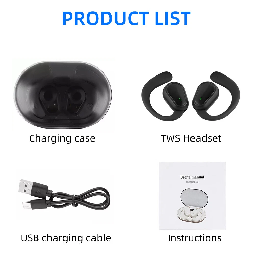 ✨Specification: Material: ABS Charging bin size: 90 * 62 * 28mm/3.54*2.44*1.1in Headphone color: black Bluetooth version: V 5.3 V 5.3 Connection distance: 10m. Sound transmission mode: air conduction How to wear: ear hook Single working time of earphone: about 4 hours. Headphone charging time: about 1 hour Charging time of charging bin: 3-4 hours The charging box can charge the earphone: about 4 times. Charging input: 5V1/5V2A Headphone Bluetooth Name: D88 📌Tip: After taking off the earphone, wait for the left and right ears to be paired, and then connect the Bluetooth of the mobile phone after the pairing is completed. 📦Packaging includes: TWS earphone x1 pair Charging box x1 USB charging line x1 Instruction x1 On Sep 22, 2024 at 20:31:04 PDT, seller added the following information: On Oct 6, 2024 at 02:44:38 PDT, seller added the following information: On Jan 9, 2025 at 17:36:22 PST, seller added the following information: