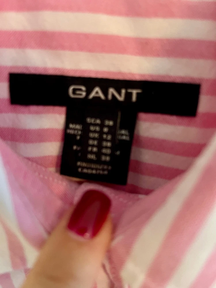 Gant ladies slim fit formal shirt pink and white stripes. Slim size UK12 Stunning fitted shirt with discreet logo on the front. Condition is like new. Made of cotton and elastane. Measurements (laid flat): Length: 58cm Shoulders: 40cm Armpit to armpit: 48cm Sleeves: 62cm Ask me any questions. I promise fast delivery. Thank you for shopping.