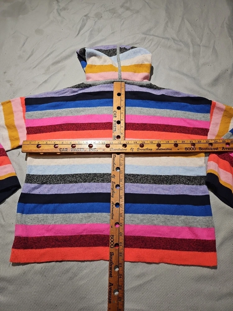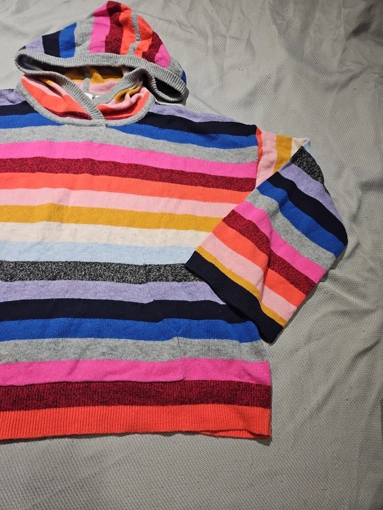 Gap Hoodie Womens XL Multicolor Jumper Rainbow Stripe Merino Wool Blend Oversize Pre-owned In excellent condition Please measure your garments at home to ensure sizing matches what you need. Measurements in photographs above This item was thoroughly checked for condition of this item. Each flaw that we find will be shown in the photos and described in the condition description and here as well. For any reason if we miss something on an item we offer 30 day moneyback guarantee refund. SHIPPING RULES: We Ship Monday through Friday If purchased before 1pm possibly will be shipped same day