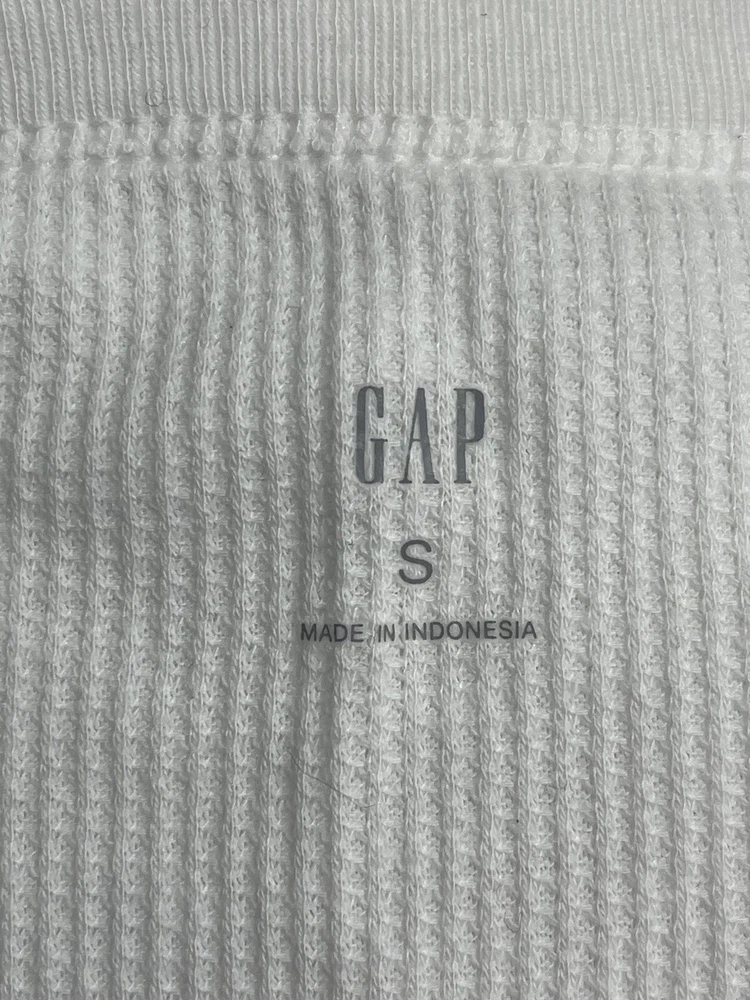Gap Women’s Size Small Long Sleeve V Neck Solid White Waffle Knit Fitted Tee Armpit to armpit 18” Total Length 23” Measurements taken laying w Please look at all the pictures as they are part of my description Smoke free pet free home