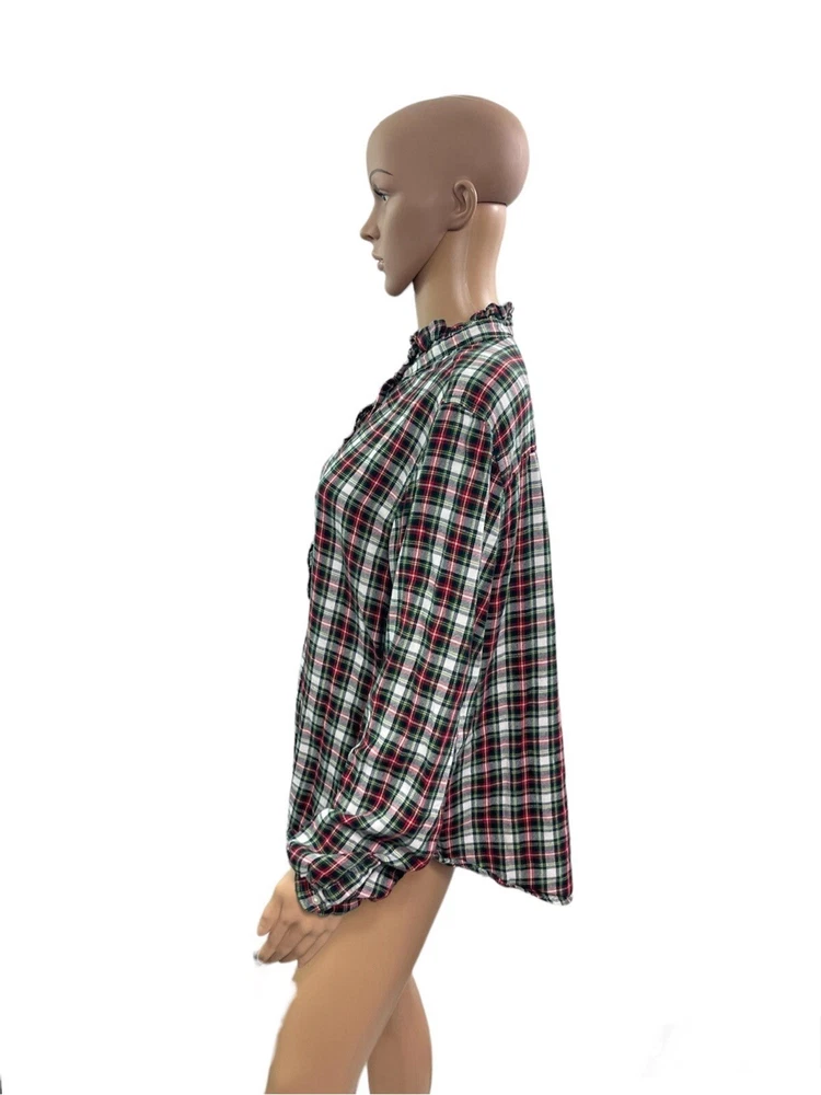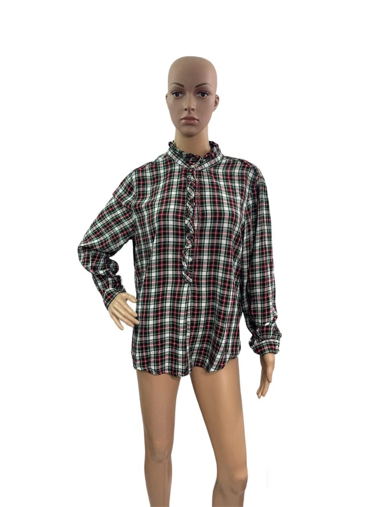 Gap Women’s Size XL Long Sleeve Ruffle Plaid Popover Blouse Armpit to armpit 22” Total Length 25” Measurements taken laying down Excellent condition no rips or stains Smoke free pet free home