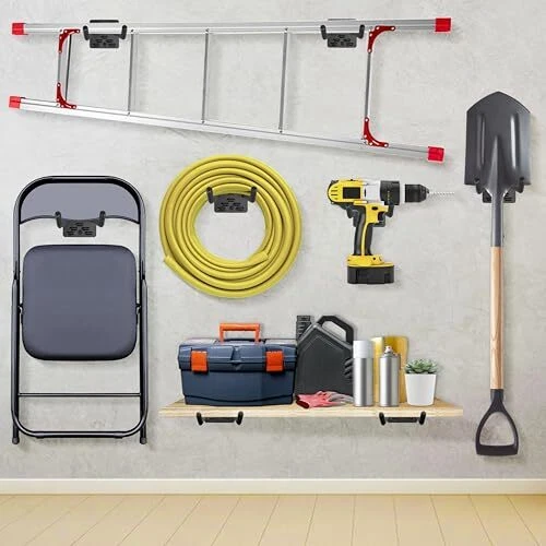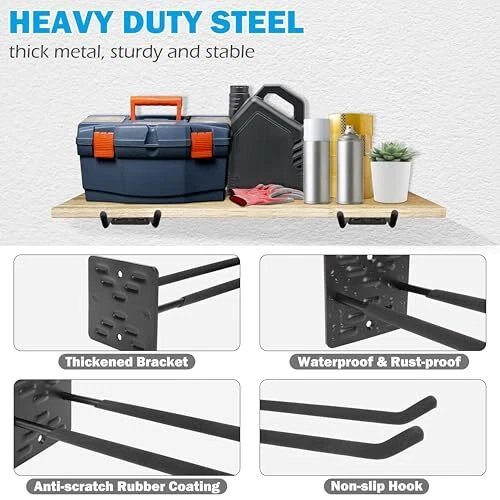 Return Policy Fast Delivery Trusted seller Garage Hooks Heavy Duty, 4 Pack Wall Mount Tool Organizer, 12 Inch Length Garage Ladder Hooks, Storage Hanger Utility Hooks for Tires, Chair, Hoses, Power Tools, Garden Yard Tools Product Description 12 Inch Length Garage Hook: Made of heavy duty steel, thickened bracket and double hook design provide greater load bearing capacity, it is the ideal choice to improve garage organization and management, optimize storage solutions. Sturdy & Durability: The surface of the wall mount hook is treated with anti-scratch coating, waterproof and rust-proof, not easy to flake and crack, extending the service life. Covered with non-slip rubber coating to prevent your tools from scratching and slipping off. Multi-purpose Ladder Hook: The garage wall hooks are versatile and can meet your various storage needs, such as power tools, garden tools, tires, ladders, shovels, hoses, folding chairs, bicycles and other large or heavy tools are able to be safely hung. Space Saving: The 12-inch length hook can store more large or heavy tools, whether in the garage, garden, warehouse, utility room. Maximize the use of space while keep the room tidy and neat. Easy to Install: The package includes 4 pack 12 inch wall mount garage hooks, 8 plastic anchors, 8 screws. Suitable for a variety of wall materials, such as concrete, brick walls, wood walls, only need a drill can be easily installed to meet the diverse storage needs. Shipping Returns Payment Shipping Shipping is FREE to all addresses other than APO/PO boxes in the lower 48 states. All our stock ships from US-based warehouses. Shipped via USPS or UPS (depending on location and package weight) Unless stated otherwise, all orders will ship within 24-72 hours of your payment being processed. Check our feedback to see the great reviews of FAST shipping we offer. Returns Seller does not accept returns Payment We currently accept payment via eBay managed payments only. Once payment is cleared, we will dispatch your shipment within 1-3 business days. Please refer to the "Shipping" tab for more information regarding shipping speed to your destination.