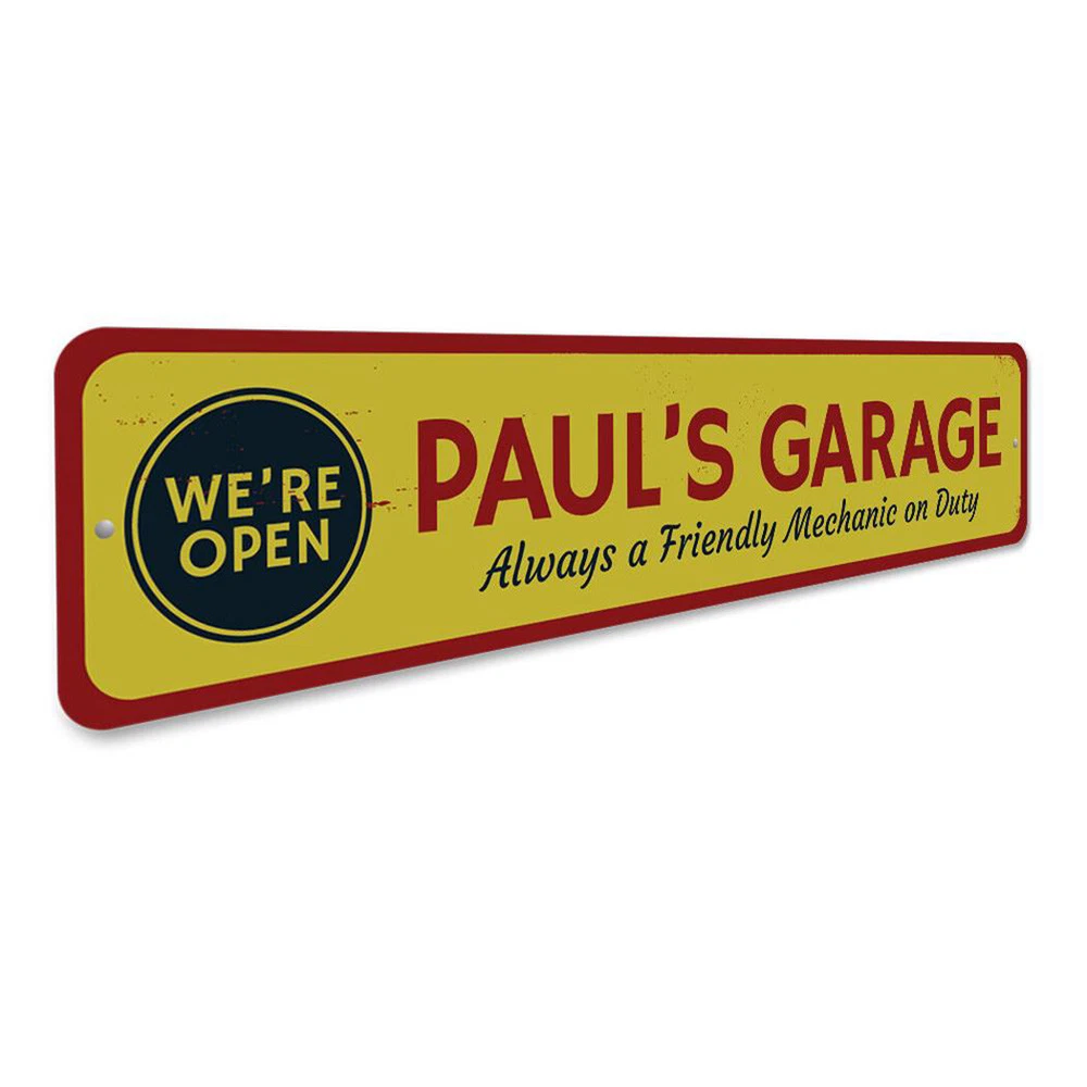 The Lizton Sign Shop Product Description Garage We're Open Sign, Personalized Friendly Mechanic Name Metal Decor Sign **there may be slight variations in color and text spacing, however your sign will be very similar to the image above. Quality Aluminum Street Signs Sign Information Aluminum Brand New Sign Comes with rounded corners and pre-drilled for easy hanging. We use the highest quality materials - 100% USA-made! Great Gift Idea - Our signs truly make a one of a kind gift. Personalize the sign with the text you want to add. Custom text for the sign can be sent to us via email. A BRAND NEW SIGN!! All of our street signs are made of premium materials. The sign itself is made of aluminum and will never rust providing years of enjoyment indoors and outdoors. No Cheap plastic!! The Lizton Sign Shop specializes in quality personalized custom aluminum signs for any occasion. These make the perfect sign for any man cave, office, basement, garage, college dorm, kids bedroom, game room, bar, pub, tavern or countless other places. *Colors may vary slightly from one computer screen to the next but the image should be very close. All content and designs are subject to copyright and may not be reproduced in any form. Payment Methods We would prefer payment to be made through paypal but we also accept all major credit cards. If you select the credit card option please contact us after you make your purchase and we can walk you through the steps to make a secure payment. Return Policies We will accept returns within 30 days of the purchase date. The buyer is responsible for any costs to return the item or items. Returns will only be accepted for items that were damaged in shipping or if we made an error in the manufacturing of your item, i.e. spelling error.