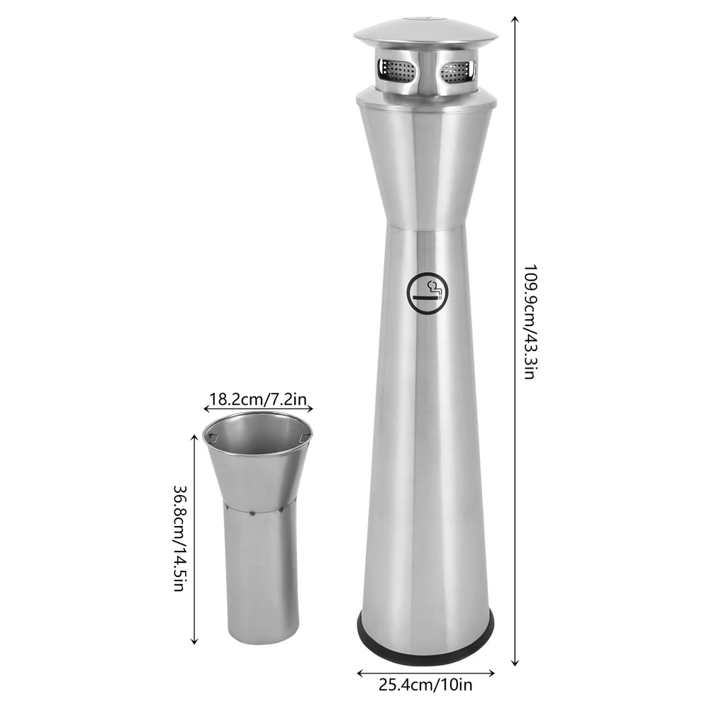 Description Littering cigarette butts in public places may cause potential safety hazards. To avoid this, our cigarette end collector with an inner barrel is the ideal choice for you. It can be set up in public smoking areas, your home, and anywhere else there is a need. With its elegant appearance, it blends into the surrounding environment, silently advocating a more civilized and environmentally friendly lifestyle, inviting every passer-by to participate in this green revolution of respect and love. Package Included 1* Cigarette End Collector with Inner Barrel Welcome Description Littering cigarette butts in public places may cause potential safety hazards. To avoid this, our cigarette end collector with an inner barrel is the ideal choice for you. It can be set up in public smoking areas, your home, and anywhere else there is a need. With its elegant appearance, it blends into the surrounding environment, silently advocating a more civilized and environmentally friendly lifestyle, inviting every passer-by to participate in this green revolution of respect and love. Key Features Sturdy and Durable: 201 stainless steel with a wire drawing process makes this product resistant to corrosion, rain, and rust, and not easy to deform, so it can be used outdoors for a long time. User-friendly: The 43.3in height is designed for adult height, you can easily throw cigarette butts into the collector without bending over. The four-sided opening design allows you to throw ash from four directions at once, making it suitable for high-traffic areas. Thoughtful Design: The mesh extinguishing panel makes it easy to extinguish your cigarette butts, which is designed to keep cigarette butts separate from other rubbish and also prevent fires. Powerful Function: Throwing cigarette butts into the collector can reduces the workload of sanitation workers, and it can guide the public to form good habits and bring convenience to society. Large Capacity : With a large inner barrel ( 7.2*14.5in ) , it can hold about 1000 cigarette butts. The high capacity avoids frequent cleaning and reduces cleaning effort. Practical Waste Bin: When you have guests, you don't have to worry about them littering your yard or patio with cigarette butts, keeping your space clean. In addition, its removable inner bucket can be used as a separate bin, which is very convenient. Easy to Clean: The simple structure and smooth surface allow you to directly rinse with water or wipe the exterior with a damp cloth. Additionally, you can remove the inner barrel and clean it separately. Installation-free: You can use the product directly after receiving it on the ground without additional installation, which saves you time and energy. Modern Appearance: The classic silver scheme and cylindrical shape make this product easy to integrate into the surrounding environment, which is beautiful and practical. Good Customer Service: We stand behind all our guests and look forward to assisting you with your purchase. It is our pleasure to answer your confusion and questions. The end of the story between us is not "we sell and you buy". Details Carrying Handle: The handle design makes it easy for you to take out and move the inner barrel. Rainproof Top: Thanks to its cleverly designed rainproof top, the inner part of the product stays dry even in wet weather, preventing unpleasant odors. Lid&Chain: The lid protects the inner barrel, and the chain makes it easy to hang the lid when you open it, providing you with more convenience. Application It is suitable for indoor and outdoor places such as yards, terraces, gardens, offices, corridors, business halls, restaurants, hotels, shopping centers, malls, public smoking areas, office buildings, pubs, homes, and so on. Specifications Color: Silver Material: 201 Stainless Steel Process: Wire Drawing Style: Modern Shape: Cylindrical Special Feature: Removable Bucket Assembly Required: No Mounting Type: Floor Standing Recommended Uses For Product: Outdoor/Indoor Capacity: About 1000 Butts Inner Barrel Size(D*H): 18.3*36.83cm/7.2*14.5in Product Size(D*H): 25.4*110cm/10*43.3in Package Size: 108*26.5*26.5cm/42.52*10.43*10.43in Gross Weight: 5kg/11.02lbs Net Weight: 4.4kg/9.7lbs Package Included 1* Cigarette End Collector with Inner Barrel Notes Please allow the slight color difference caused by the shooting light and the 1-3 cm error due to manual measurement, and make sure you do not mind before ordering. Payment Delivery details Terms of sales About us Contact us Payment We accept ebay payment 。 Fees such as import duties, taxes are not included in the item price or shipping costs. These charges are the buyer's responsibility. Delivery details Shipping: 2-9 working days to: USA Terms of sales We maintain high standards of excellence and strive for hundred percent customer satisfaction. Feedback is very important to us. We hope that you contact us immediately before you give neutral or negative feedback, so that we can address your concerns. It is impossible to address issues if we do not know about them! About us Your satis faction is our ultimate goal. We work hard to earn your trust and future business. Our certified technicians have tested each item before shipping. The unit comes with 1 year limited warranty on all manufacturing defects. a) If you receive a defective item, you may return it or ask for a discount. Please contact us within 14 days after you receive the package. b) What you returned must be intact and in its original packaging as re? u. Customer is responsible for shipping costs of the returned item. c) We will cover the cost of shipping back t with the shipping rate indicated in the registration page. We will send you a new unit or refund the full payment you paid. Thank you. Contact us Business Hour Business Hour: Monday To Friday: 8:30 AM to 5:00 PM (Beijing China time) Due to time zones, our reply to your questions may not be immediately. But within above working time, we will reply your ema