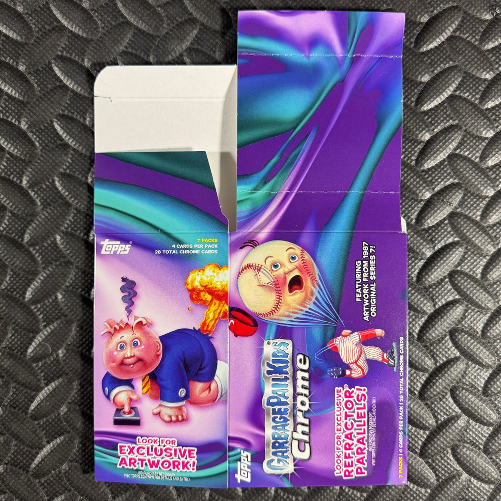 ~EMPTY~EMPTY~EMPTY~EMPTY~EMPTY~EMPTY~EMPTY~EMPTY~EMPTY~EMPTY~EMPTY~EMPTY~ This listing is for a Topps Garbage Pail Kids 2025 Chrome 7 EMPTY blaster box. For USA buyers, I will mail this flattened box in a large flat envelope to keep the cost down. If you want it shipped in a padded mailer or box, please ask before buying as there will be an extra charge for this. Any questions? Please ask before buying.