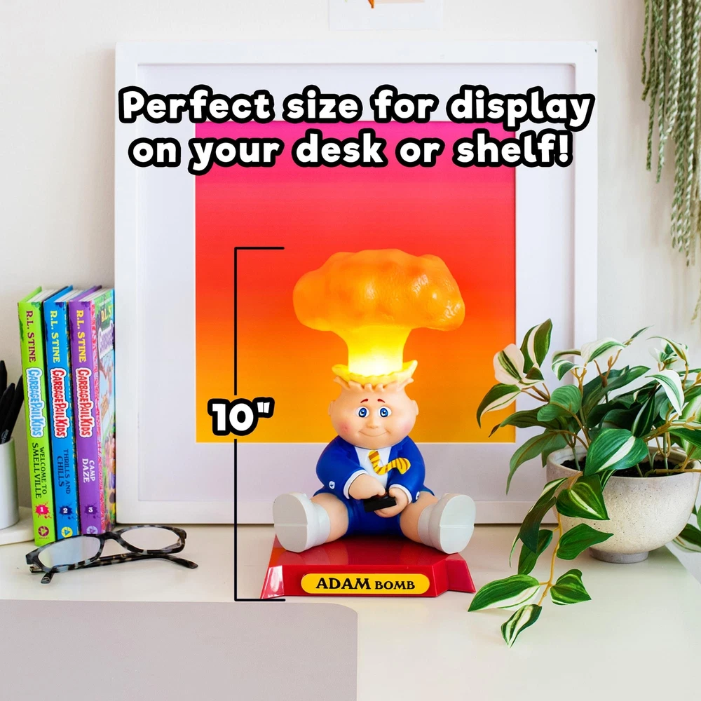 This Adam Bomb mood light is a must-have for any Garbage Pail Kids fan! The 10-inch figural light looks just like the classic trading card artwork, and the soft glow adds a fun, nostalgic vibe to any room. It's solidly built, detailed, and makes an awesome conversation piece. Perfect for collectors or anyone who loves retro pop culture—happy with my purchase and would definitely recommend!