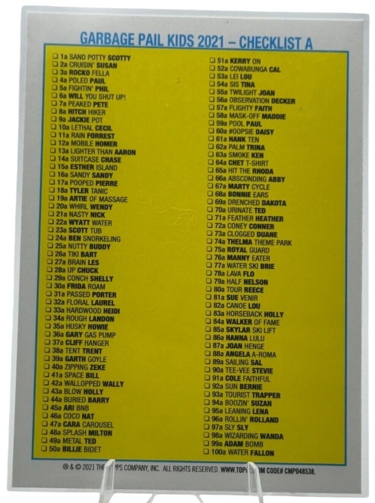 This card showcases the comedic misadventures of Buried Barry, part of the wild Garbage Pail Kids lineup. A must-have for humor-loving collectors. • 2021 Go On Vacation series • Checklist A on the back • Vibrant, glossy finish • Standard trading card size • Iconic Garbage Pail Kids design Top to bottom = 3.5 inches Side to side = 2.5 inches Discover More Treasures at FlipSide Collectibles! Explore our curated selection of unique collectibles—from rare sports cards and trading card games to captivating comics and timeless toys. New gems are added regularly, so there is always something exciting to uncover. Visit Our Store at https://www.ebay.com/str/anmcollectibles and find your next prized possession today!