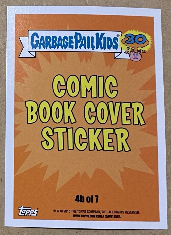 Loose card of Booth Beth black border parallel from GPK’s 30th Anniversary set. 4b of 7 Comic Book Cover Sticker. Great condition no flaws.