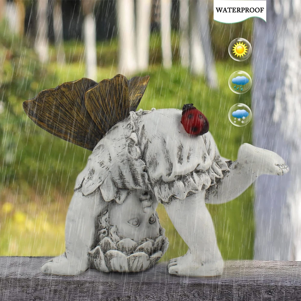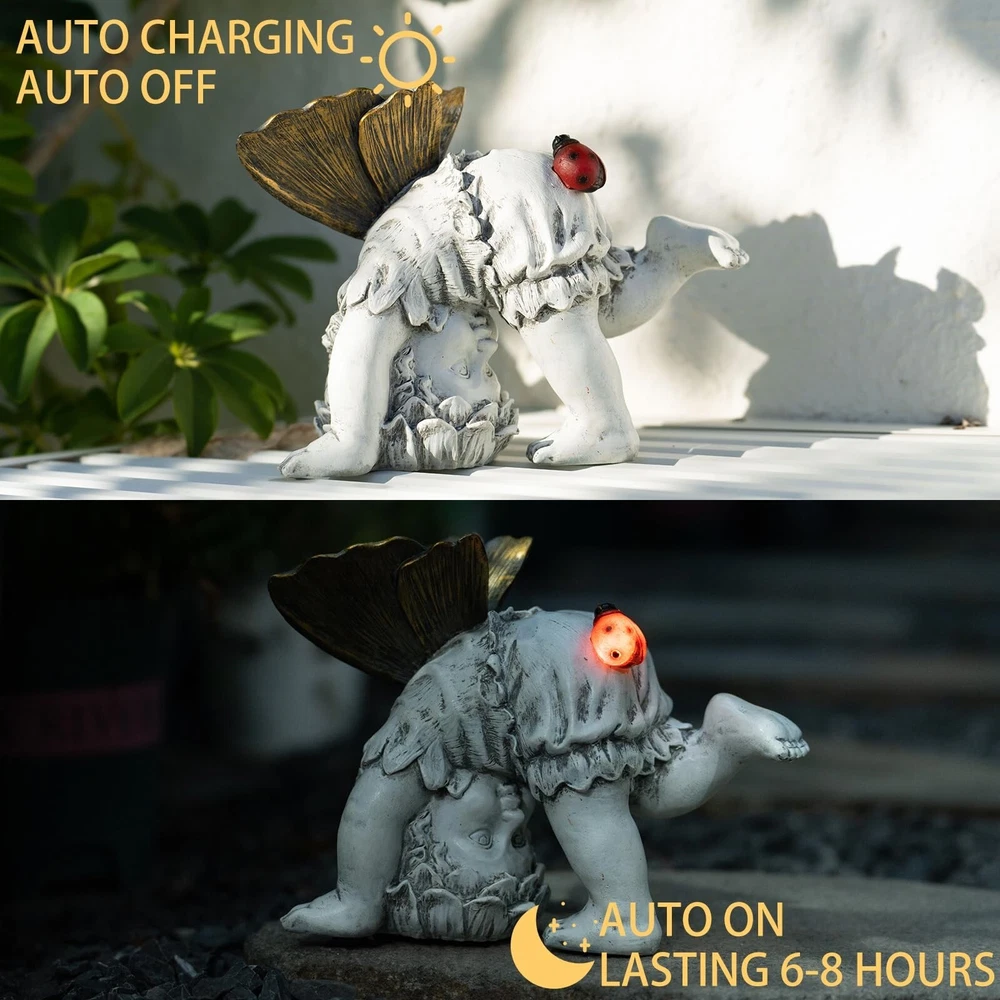 Garden Flower Fairy Outdoor Solar Decor,Fairy Garden Sculpture,Resin Ornaments for Patio Lawn Yard Porch,Playful Garden Flower Fairy Statues for Outside Angel Gifts,8.98 Inches Tall Product Details Color: Somersault Boy Brand: Suyorpe MPN: flower fairy-001 UPC: 762704118572 EAN: 0762704118572 Color: Somersault Boy Brand: Suyorpe Theme: garden Material: Resin Style: Art Deco Color: Somersault Boy Brand: Suyorpe Theme: garden Material: Resin Style: Art Deco Occasion: Mother's Day, Christmas, Birthday Product Dimensions: 4.88"D x 8.98"W x 7.2"H Recommended Uses For Product: Outdoor Mounting Type: garden Cartoon Character: fairy Finish Type: glossy Special Feature: Solar Powered Year: 2023 Product Care Instructions: Wipe Clean Collection Name: birthday collection Global Trade Identification Number: 20 Seasons: All Seasons UPC: 762704118572 Number of Items: 1 Item Weight: 1.96 pounds Manufacturer: Suyorpe Country of Origin: China Item model number: flower fairy-001 Batteries: 1 AAA batteries required. (included) Date First Available: February 7, 2023 AUTO-ON SOLAR LIGHTThis solar flower fairy statue is very easy to install and use. simply turn on the switch and place it under the sunlight and let them charge during the day. they will automatically turn on at night to provide a warm and welcoming glow for 8-10hours. DURABLE RESIN ORNAMENTSMade of high-quality resin, this figurine is weather-resistant and won't fade,this statue will look amazing even after exposure, rainstorm and strong wind, making it a long-lasting addition to your lawn sculpture collection. WIDE APPLICATION With its charming boy figure and intricate details, this statue will bring a touch of elegance whether placed on gardens, patios, backyards or lawn. PERFECT GIFT IDEAThis cute fairy statue is 8.98*4.88*7.20 inches in size and it' s well packaged in box, makes a perfect birthday/mothers day/Christmas gift for girl friend,mom, pals or any garden enthusiast.It will light up their yards and bring a smile to their faces. PROFESSIONAL AFTER-SALES SERVICESuyorpe solar products are professionally tested before they are shipped out from the factory. We are dedicated to provide customers with high quality product through constantly improvement.Promise a 30 Day Refund Guarantee and 180 Day Limited Product Warranty, order without worries. Please feel free to contact us if you have any questions with your purchase.