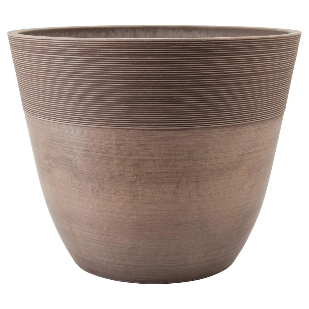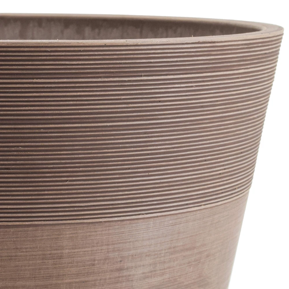 Part of our award-winning PSW Pot Collection, the Etched Pot from Garden Products is made from a mix of recycled plastic, stone , and wood dust. This smart-looking container is ideal for planting combination gardens that provide adequate space for descending roots. The height works well for those plants that will drape and grow over the pot’s edge. Both indoor and outdoor use are popular with this deep pot. For outside use where drainage is likely to be necessary, the bottom of the pot indicates the ideal area for optional drilling. The winning combination of recycled ingredients in the PSW line makes this an attractive, eco-friendly product that is also weather resistant and easy to clean. Available in colors and three sizes, the container features elegant etched ridges around the top portion of the pot. The sturdiness of this etched pot is admirable, and its significant feel and look make it a thoughtful gift for those who enjoy plants and planting. Because it coordinates with other PSW co LIGHTWEIGHT & DURABLE: Answering a gardener’s wish, this PSW item looks heavy but is lightweight and sturdy, which means it’s easy to move and reposition on a patio or in a garden. RECYCLED MATERIALS: A blend of recycled plastic, stone and wood dust is inventively used to create this substantial-feeling and good looking planter. PSW products are both attractive and eco-friendly. ORIGINAL: The unique appearance of each PSW product is -of-a-kind due to the blending of recycled materials. The slight variations infer an artisan’s touch, making these moderately deep planters appealing and functional. WEATHER RESISTANT: Through snow, sleet, rain or heat – this item can withstand extremes. UV rays won’t fade this item so count on it to be long-lasting. PSW etched pots are for use indoors and outside. DRAINAGE OPTIONAL: Optimal locations for drilling are indicated on the bottom of the pot, enabling this planter to be an ideal choice for enjoyment both indoor and outdoor. VARIETY: Having choices makes a difference when creating a certain look in your garden or sunroom. PSW products are available in a variety of sizes and colors to complement your existing gardenscape or to create a new porch or patio look.