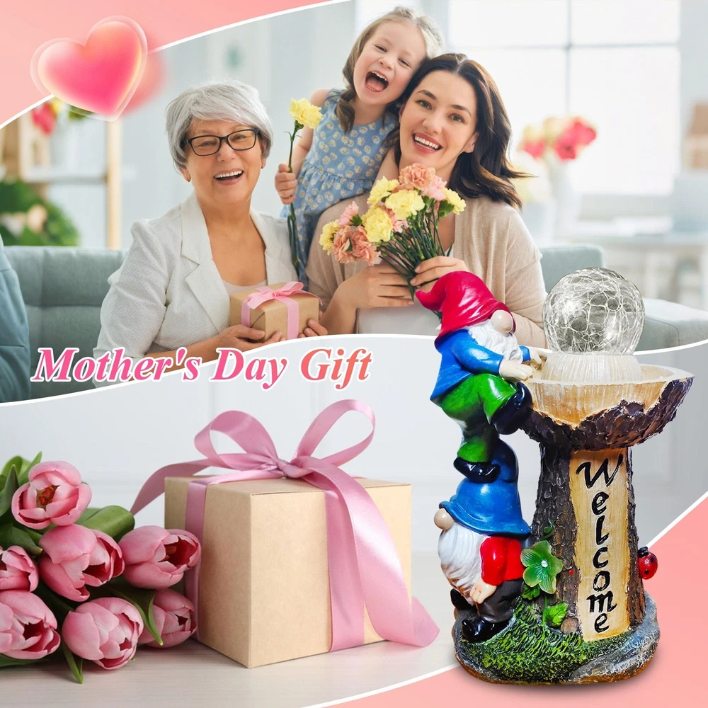 Garden Statue Gnome, Garden Gnomes Statues with Solar LED Light,Funny Double Gnomes Sculptures Yard Patio Lawn Porch Decor, Ideal Gnomes Gifts for Women/Mom/Grandma Product Details Style: Gnomes Statue Brand: Binqiuu MPN: yijiayi-004 UPC: Does not apply EAN: Does not apply Color: Gnomes Statue Brand: Binqiuu Theme: Garden Decoration Material: Resin Style: Gnomes Statue Color: Gnomes Statue Brand: Binqiuu Theme: Garden Decoration Material: Resin Style: Gnomes Statue Occasion: Housewarming, Anniversary, Birthday Product Dimensions: 5.11"D x 6.8"W x 10.3"H Recommended Uses For Product: Outdoor Mounting Type: Freestanding Cartoon Character: Gnome Finish Type: glossy Special Feature: Solar Lights Product Care Instructions: Wipe Clean Collection Name: Spring Seasons: Spring, Summer, Fall, Winter Number of Items: 1 Item Weight: 2.79 pounds Manufacturer: Binqiuu Country of Origin: China Item model number: yijiayi-004 Date First Available: January 8, 2024 Garden Decor: The garden gnome statue climb the fountain by stepping on the shoulders of their fellows. looks straight ahead, waiting for you to come home and welcome someone to your garden. this outdoor gnome adds some playful atmosphere to your garden and is Ideal gnomes decorations for yard. Superb Graftsmanship:The garden gnome statues large size 10.4''H x 5.9''L x 4.3''W made of high quality resin, sturdy and durable; each garden gnome is carved and colored by skilled technicians, the color is natural and lifelike, and can be used outdoors for a long time without fading for garden gifts! Automatic Solar Charging:Our solar gnomes featuring three LED lights, these are the following, a magic ball, flower, and ladybug. turn on the switch button, charge the garden statue by placing it in sunlight for 5-8 hours, It will automatically light up for 8-10 hours at night., note: If you are not sure if the button is on ,block the solar panel with your hand, if the light is on, the button is in the "ON" position. Gnomes Gifts: Outdoor garden gnomes whether for Mother's Day, birthdays, housewarmings, anniversaries, Easter, Independence Day, Halloween, or Christmas, these solar gnomes decor for outside beautiful and unique gifts. Exceptional Customer Service: We prioritize both product quality and customer satisfaction. Our garden gnome statues are securely packaged to ensure they arrive undamaged. Committed to excellent after-sales service, we promptly address any quality issues or damages, ensuring a reassuring and enjoyable shopping experience for our valued customers.