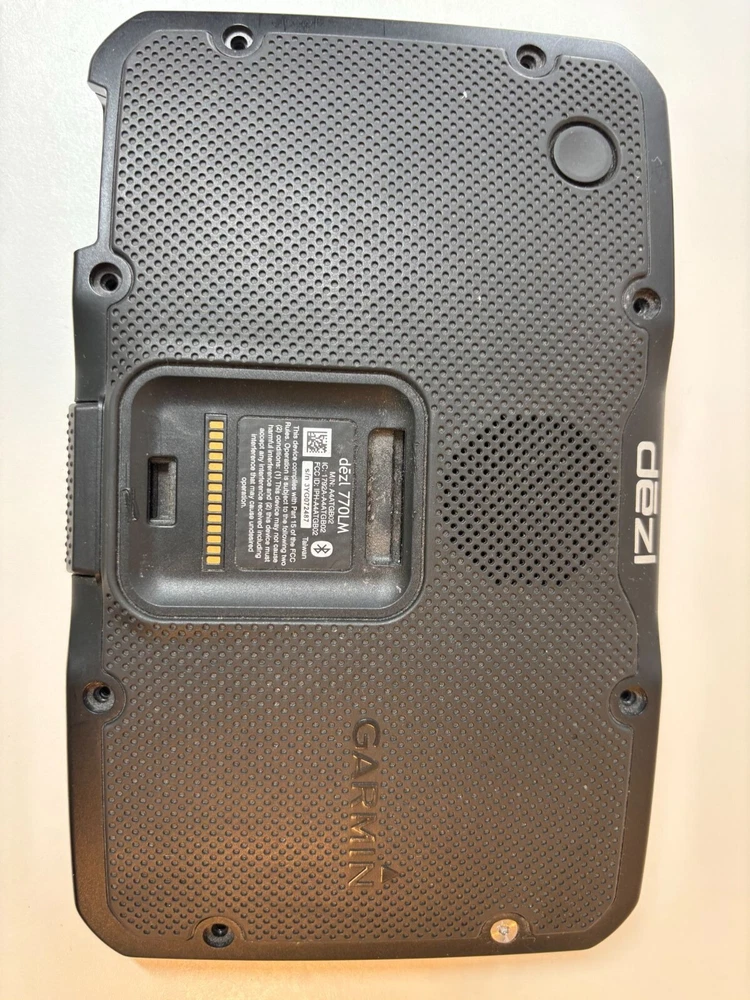 Reliable Garmin Dezl 770LM Truck GPS navigator featuring a 16GB PNY MicroSD card for expanded map storage. Ideal for truckers and long-distance travel • 7-inch touchscreen display • Preloaded lifetime maps • Bluetooth connectivity for hands-free calling • Includes 16GB PNY MicroSD card for extra storage • Durable design for heavy-duty use Some minor scratches on the screen and casing. Top to bottom = 5 inches, left to right = 7.5 inches.