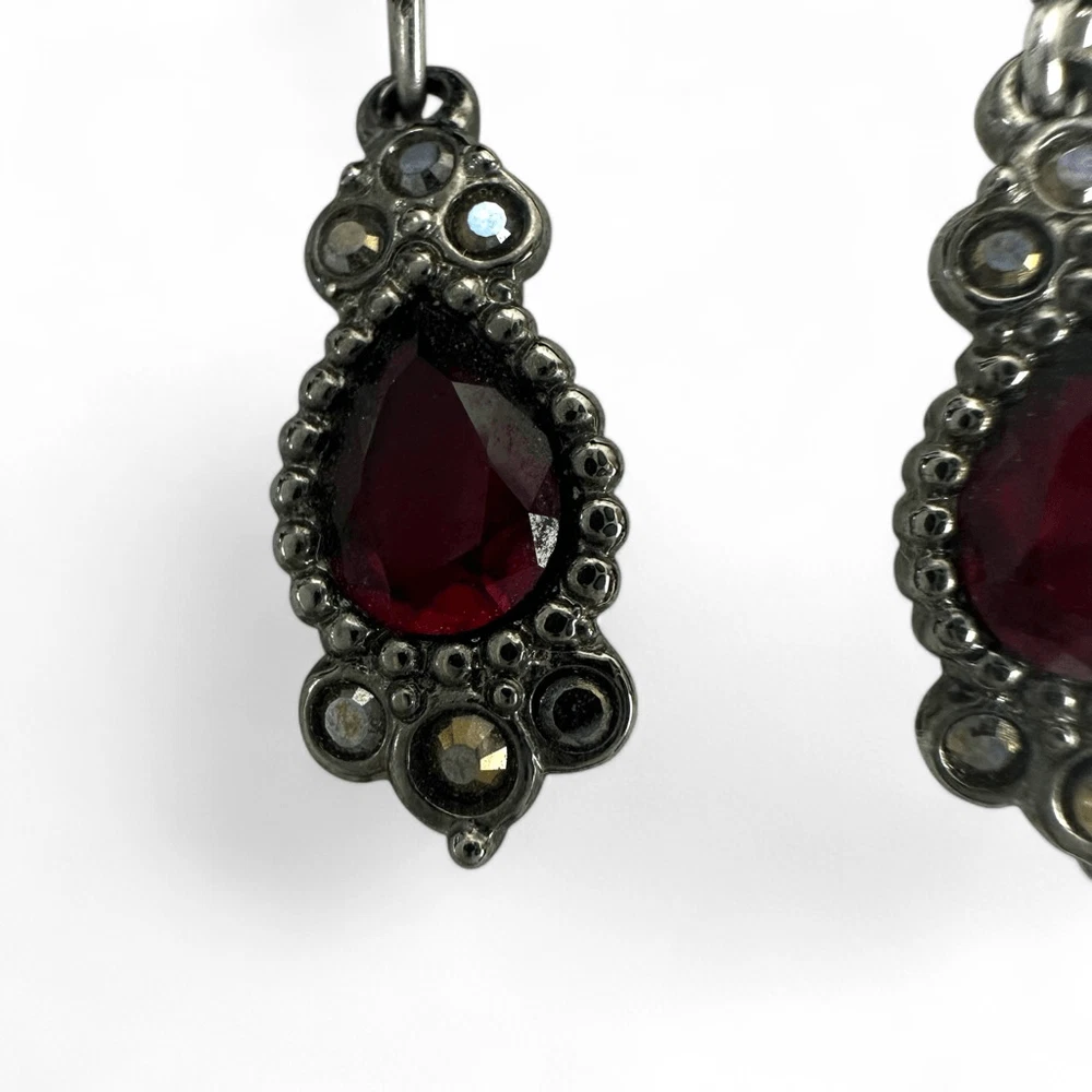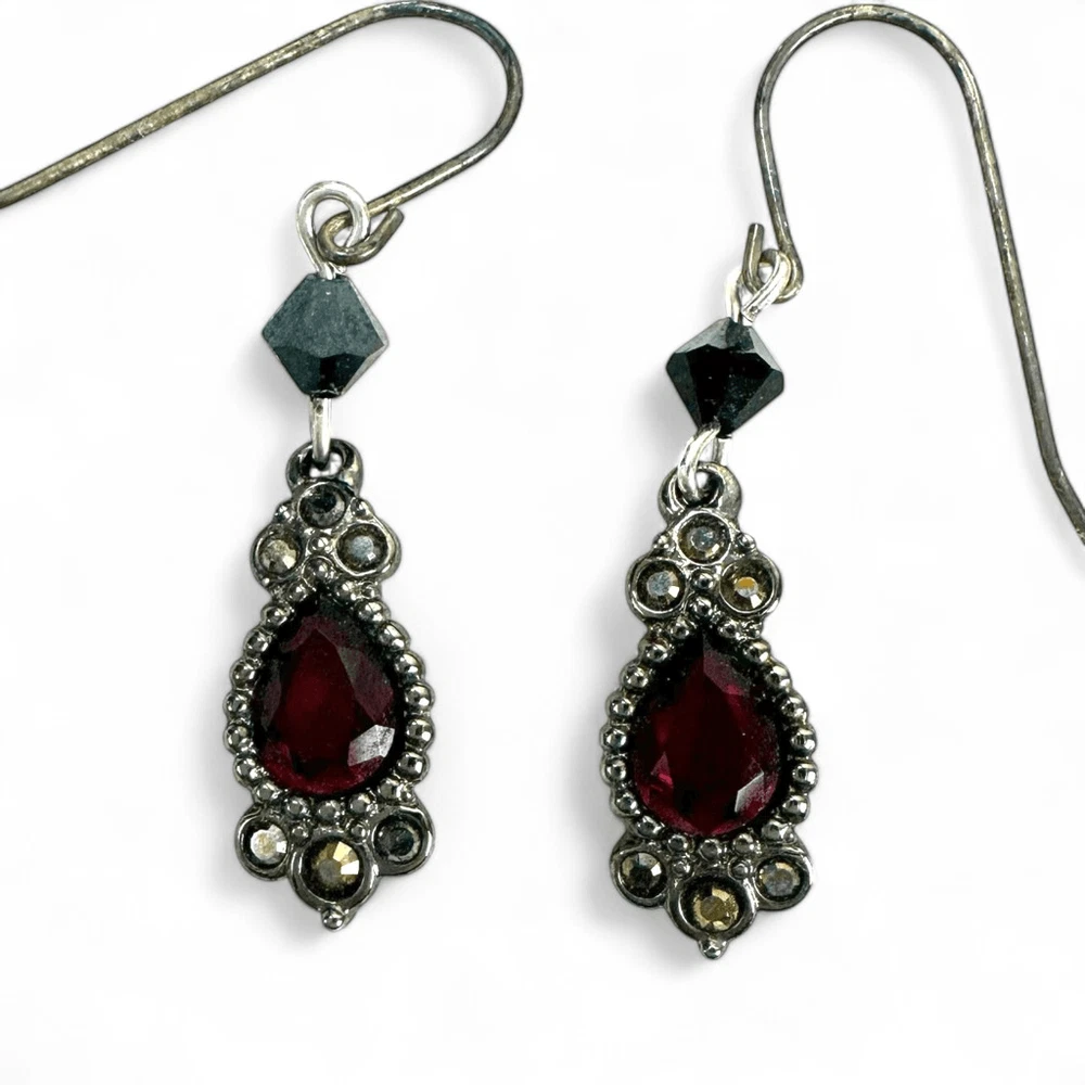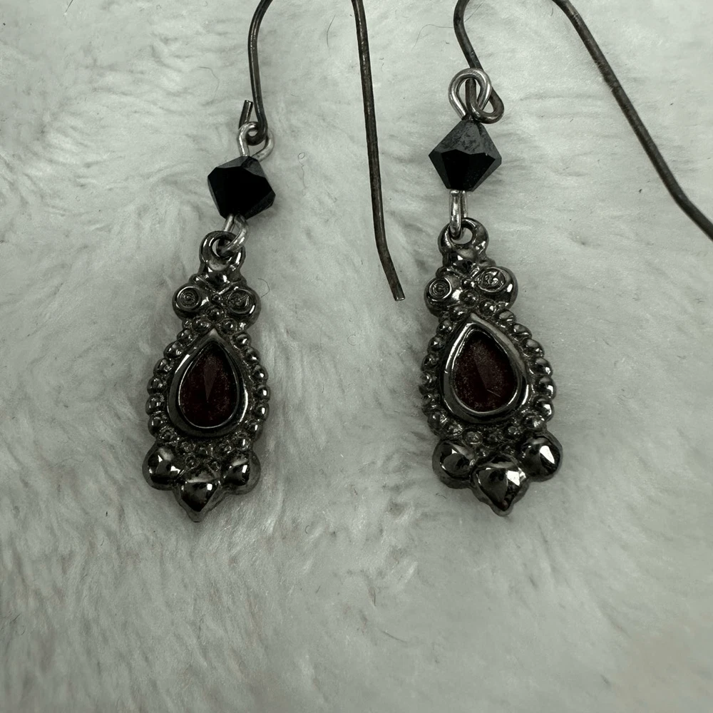 Garnet Filigree Silver Tone Dangle Hook Earrings Regal Dark Victorian Gothic Preowned/gently used Ships fast! Ships from a smoke free home