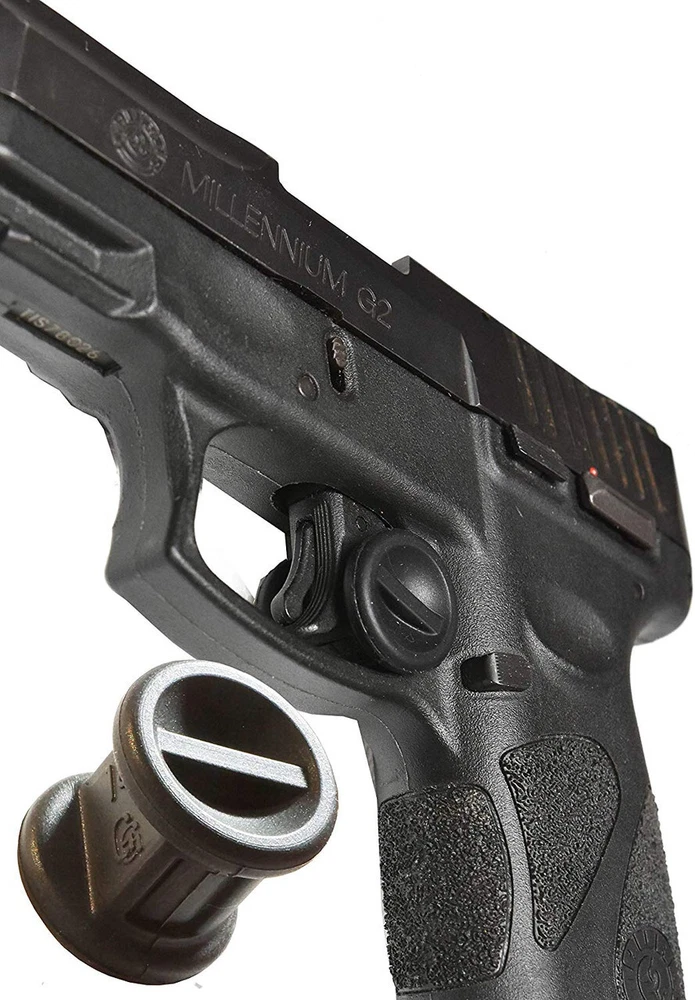 Garrison Grip Adjustable Micro Trigger Stop Holsters Fits Taurus PT111G2 G2c Key Features: GARRISON GRIP Patented Micro Trigger Stop : The Adjustable Micro Trigger Stop Holster is placed behind the trigger of your gun to help prevent accidental discharge. The Micro Trigger stop can be used with or without a trigger-mounted laser and can be used for a variety of guns, however each firearm has its own sized trigger stop. FACT: 70% of all semi-auto guns do not have a built-in quick-release safety and 100% of all revolvers do not have a quick-release built-in safety. PATENTED MICRO TRIGGER STOP: This Patented Micro Trigger Stop Holster can buy extra time to retrieve your gun should it get into the hands of a child or inexperienced or reckless adult. You owe it to yourself and others around you to take every precaution to help ensure that the gun will not discharge . THIS PRODUCT IS MANUFACTURED FOR THE MAKE AND MODEL OF YOUR GUN: Do not buy this Micro Trigger Stop if this listing does not show your gun's specific make and model. If you do not see your firearm, make, and model listed, contact the seller for help. He can investigate what Micro Trigger stop will fit your gun, if available. We do not manufacture for all gun models. There are trigger types that do not work with the Micro Trigger Stop. Product Description Unintentional and Accidental Shootings Happening Every Day Gun accidents are more common than anyone would like to think. There are 467,000 YouTube videos of people accidentally shooting themselves with pistols or guns that graphically shows this fact. A good-sized number of these victims would probably wish they used the Micro Trigger Stop if they knew about it. Most semi-autos and all revolvers do not have built-in Switch On/Off Safeties. You owe it to yourself and others around you to take every precaution for self-defense to help ensure that the gun will not discharge accidentally by you, a child or anyone else. Better To Be Safe Than Sorry Even if you have a built-in safety, wouldn't it be smart to have a second line of defense for accidental discharge especially when carrying chambered? This patented product is an uncomplicated design that can help make conceal carry a little safer. The tension adjusting Micro Trigger Stop is designed to be wedged between the back of the trigger and the back of the trigger guard. It is made of a moderately flexible rubber material that has enough flexibility to be pushed out of position with one finger and you are fully functional. If your habit is to carry a gun either un-chambered or chambered for quick response time, the Micro Trigger Stop can be pushed out in less time that it takes to remove the gun from a pocket, holster or purse. You Are Truly The Only Safety The Micro Trigger Stop Holster does not function as an absolute safety. It is only as effective as the user is responsible. This is not in any way considered child safe or humanly infallible. The Buyer must evaluate his or her habits and the way he or she intends to carry and access the gun. I use it and find it to be highly effective in allowing me to feel more comfortable with a chambered gun. How To Operate The Adjustable Micro Trigger Stop How To Use the Patented Micro Trigger Stop: Please make sure the gun is unloaded whenever you are going through this procedure, First, if you place the flat surface behind the trigger when inserting it into the back of the trigger guard, this position of the trigger stop would be the smallest adjustment. If after putting the micro trigger stop in this position, you can still actuate the trigger, place the rounded surface behind the trigger. This would be approximately a 3mm adjustment. If you can still actuate the trigger, you have the wrong trigger stop for your firearm. Please watch the video included in this listing for further instructions.