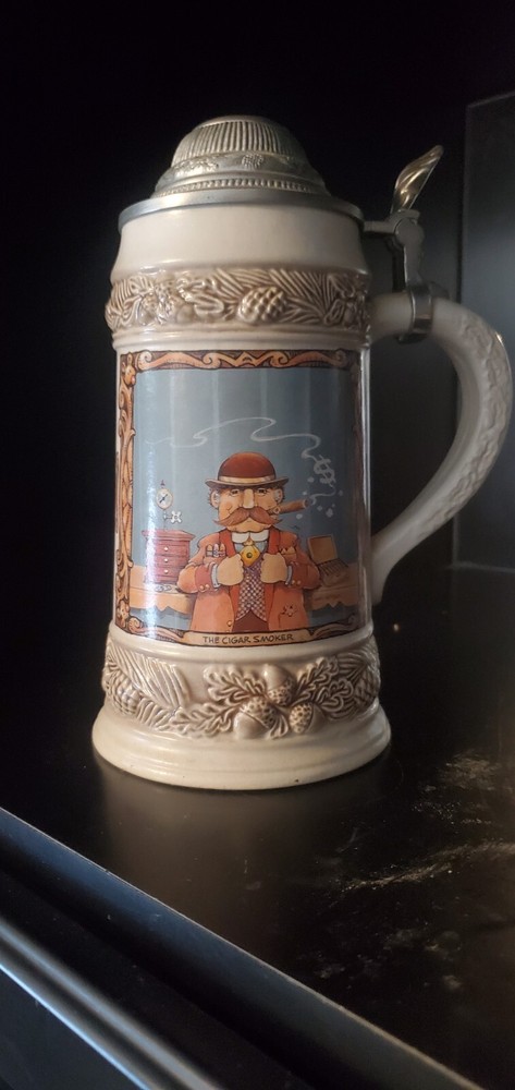 This Gary Patterson Stoneware Smoking Beer Stein is a must-have for collectors and beer enthusiasts alike. The thumb open lid and the cold beverage type make it perfect for any occasion, while the multicolor design adds a touch of novelty to your drinkware collection. Made of high-quality stoneware by Gerz, this stein stands more than 8 inches tall and features a smoking theme that is sure to impress. The craftsmanship of this stein speaks for itself, and its country of origin, Germany, only adds to its appeal. This item is perfect for a single user, as it serves one. Whether you're a collector or just looking for a unique addition to your kitchen, the Gary Patterson Stoneware Smoking Beer Stein is sure to impress.
