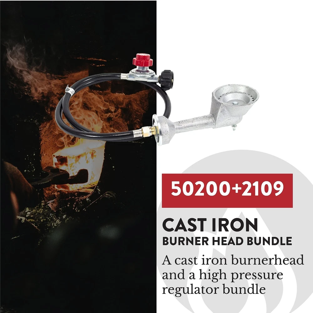 GasOne 50200+2109 High Pressure Cast-Iron Round Burner Head with Brass Fitting O, Regulator & Hose Product Details Size: Burner Head + Regulator & Hose Brand: Gas One MPN: 50200+2109 UPC: 859176001119 EAN: 0859176001119 Brand: Gas One Fuel Type: Liquefied Petroleum Gas Material: Aluminum Product Dimensions: 8.5"L x 3.3"W x 2.3"H Power Source: Propane Item Weight: 1.5 Pounds UPC Global Trade Identification Number: 19 Brand: Gas One Fuel Type: Liquefied Petroleum Gas Material: Aluminum Product Dimensions: 8.5"L x 3.3"W x 2.3"H Power Source: Propane Item Weight: 1.5 Pounds UPC: 859176001119 Global Trade Identification Number: 19 Item Weight: 1.5 pounds Manufacturer: GAS One Country of Origin: China Item model number: 50200+2109 Is Discontinued By Manufacturer: No Includes - cast iron high pressure burner head and 0-20 psi high Pressure regulator and 4 ft hose Universal replacement burner - With our gas one burner head, you can use it with high pressure or low pressure regulators (high pressure regulator is recommended for high output) Brass fitting orifice Block - includes brass fitting orifice Block & air Shutter and spring Heat resistant - cast iron will not melt easily compared to aluminum construction To be used with propane only Universal replacement burner - with our gas one burner head, you can use it with high pressure or low pressure regulators (high pressure regulator is recommended for high output) brass fitting orifice block - includes brass fitting orifice block & air shutter & spring heat resistant - cast iron will not melt easily compared to aluminum construction