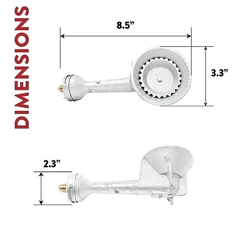 Return Policy Fast Delivery Trusted seller GasOne 50200+2109 High Pressure Cast-Iron Round Burner Head with Brass Fitting O, Regulator & Hose Product Description Includes - cast iron high pressure burner head and 0-20 psi high Pressure regulator and 4 ft hose Universal replacement burner - With our burner head, you can use it with high pressure or low pressure regulators (high pressure regulator is recommended for high output) Brass fitting orifice Block - includes brass fitting orifice Block & air Shutter and spring Heat resistant - cast iron will not melt easily compared to aluminum construction To be used with propane only Shipping Returns Payment Shipping Shipping is FREE to all addresses other than APO/PO boxes in the lower 48 states. All our stock ships from US-based warehouses. Shipped via USPS or UPS (depending on location and package weight) Unless stated otherwise, all orders will ship within 24-72 hours of your payment being processed. Check our feedback to see the great reviews of FAST shipping we offer. Returns Seller does not accept returns Payment We currently accept payment via eBay managed payments only. Once payment is cleared, we will dispatch your shipment within 1-3 business days. Please refer to the "Shipping" tab for more information regarding shipping speed to your destination.