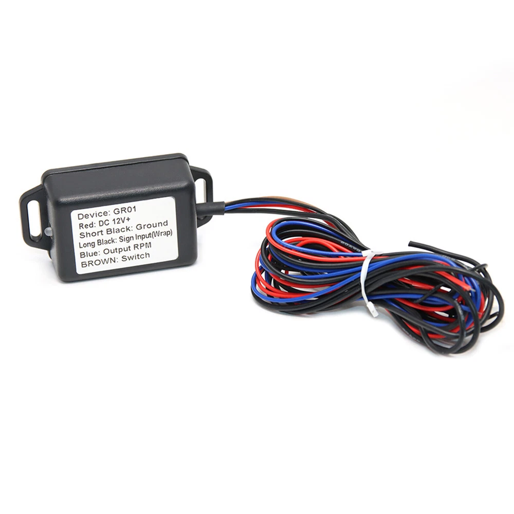 Model: GR01 1.Cable Definition RED: Power Supply 12V DC BLACK: Power GND BLACK/BROWN (1.6m): Input Signal Cable BLUE: Output Signal (fixed 4pulses/round rpm ratio) BROWN: Switch Control Cable 2.Configure Steps: 1)Connect Switch Cable to enter in setting mode 2)Find the Ignition Coil of your Gasoline Engine, normally it’s close to Spark Plug, which can be easily found from your engine/car/vehicle user guide. Wrap the input signal cable 5~8 round across the ignition coil cable, and then tighten like below: 3)Power on the Sensor, the LED will stay Green 4)Disconnect Switch Cable, the LED will still stay Green and calculate the detected pulse from engine 5)Connect Switch Brown Cable and Disconnect again, the LED will flash 6)The sensor output Pulse signal with fixed Tach RPM ratio 4pulese/round, which means it will output 66.6Hz when 1000RPM. For example, if the input frequency is 100Hz @1000RPM, the sensor will convert the signal and then output 66.6Hz @1000RPM 7)How to configure Tachometer? Please set your Tachometer/RPM Gauge tach RPM ratio to 4 pulses/round, then the Gauge will work properly. On Apr 7, 2025 at 06:50:56 PDT, seller added the following information: