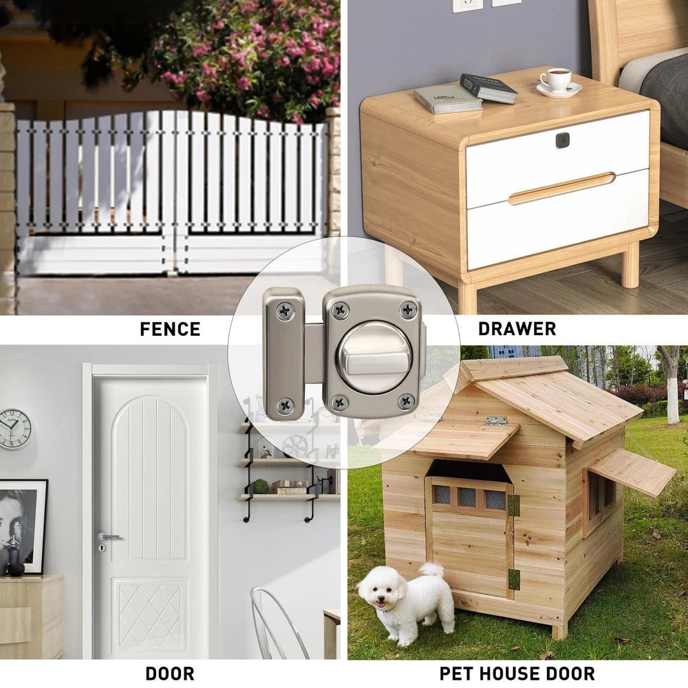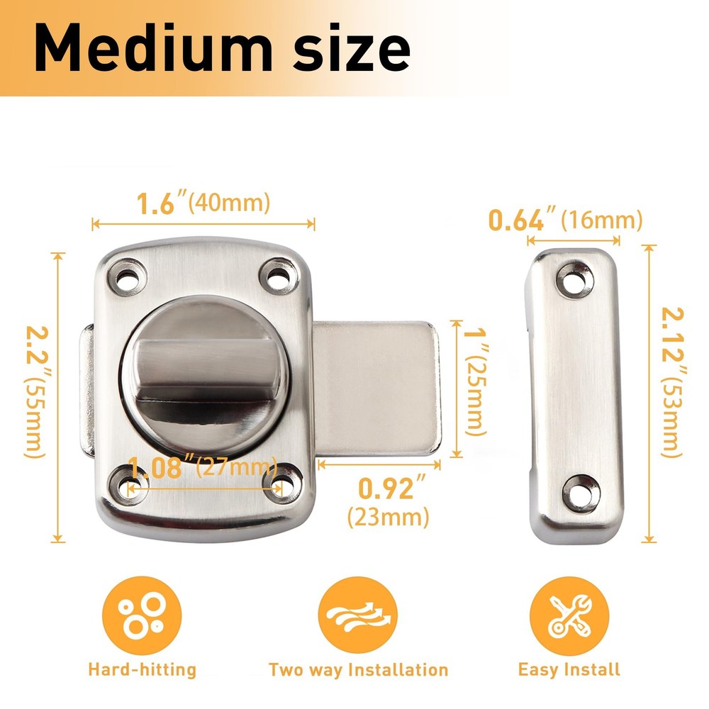 Gate Latch Slide Bolt Latches Lock,Safety Double Sided Rotate Gate Hardware,Brushed Finish 【Zinc Alloy Material】The door latch is made of high quality zinc alloy, which can resist daily corrosion and oxidation, ensuring durability and reliability. The surface of the screen door lock polished and brushed, smooth and resistant to daily scratches. 【Left And Right Knob Design】The inside door lock different from ordinary door locks in that it supports 180° smooth rotation, making it easy to switch between open and closed states. The two sides of the slide lock are connected, so you can decide the direction of the lock during installation, and both left and right sides can be installed. 【Heavy Duty Design】The barn door latch is made of thickened solid metal material with thick structure, which can withstand strong external impacts, not easy to bend or break and is internally pry-resistant,perfect for the elderly and ladies who are alone at home. 【Provide Security Measures】The door latches for top of door are suitable for both indoor and outdoor use and cannot be opened from the other side of the door, preventing unwanted guests or others from breaking in, providing extra security for your family; you can close the sliding door for added privacy, or prevent children or pets from opening certain closet doors, you are worry-free. 【Easy To Install】All the accessories needed for door latches installation are included, you just need to mark the height and mounting holes at the door frame and then fix it to the door frame with screws. (Note: You need to pay attention to the distance of the swivel card, if the distance is not correct, it will not work properly.) Specifications Material:Zinc alloy Finish:Brushed Package Includes:Bolt latch Screws Installation Method :Screws mounted Heavy Duty Material, strong and durable Sliding left and right two-way latch lock, simple and practical Installation hardware is included for easy installation Applicable to all kinds of bathroom doors, toilet, windows, barns, garage doors, pet doors, inside the door etc; Shipping We offer FREE shipping on all orders! We ship within Three business days of payment, usually sooner. We use a selection of shipping services such as UPS, FedEx, USPS etc. We only ship to the lower 48 states, no APO/FPO addresses or PO Boxes allowed. Local pickups and combined shipping options are not provided at this time. Return You can return a product for up to 30 days from the date you purchased it. Any product you return must be in the same condition you received it and in the original packaging. Please keep the receipt. Payment We accept payment by any of the following methods: PayPal Please pay as soon as possible after winning an auction, as that will allow us to post your item to you sooner! Feedback Customer satisfaction is very important to us. If you have any problem with your order, please contact us and we will do our best to make you satisfied. Contact Us If you have any queries, please contact us via ebay. We usually respond within 24 hours on weekdays. Please visit our eBay store to check out other items for sale! Thank you for shopping at our store.