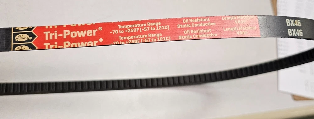 Gates BX46 Tri-Power Belt Cogged. 13/32" Width x 49" Outside Length ** Thank you for shopping with SUSA International. ** Products - All items may show signs of storage wear from industrial environment. SUSA International is not partnered or affiliated with any manufacturers of listed products. All products are sold as listed with descriptions & conditions as accurate as possible. Pictures may be taken of a single item from a batch of items, therefore product shipped may not be exact item pictured. Shipping - Packages are usually shipped within 1 Working Day of payment receipt. (Excluding Saturday/Sunday) International buyers, whatever the custom duty or charges if any will be borne by the buyer. As different countries charge Different Custom Duty. Buyer is responsible for Paying all the charges. If for some reasons shipping of the product is delayed, you would be duly informed about the same along with the expected date of shipping. Payment - Payment must be received within 7 days. If payment isn't received within 7 days, the listing will be revoked and a Non-Paying Buyer alert will be filed. Returns - All items are sold as it is. We accept returns only if the item was not as described in the listing. Buyer must return the item exactly as received within 7 days and will be responsible for all additional shipping. We do our best to present accurate, detailed information about every item we sell. If you have any questions, please contact us before Buying. Feedback - In case you are not satisfied, please contact us immediately. We will do everything possible to please you and bring a smile on your pretty face. Looking forward for your Positive Feedback. We believe that all disputes can be settled by proper communication. So please communicate for faster resolution.