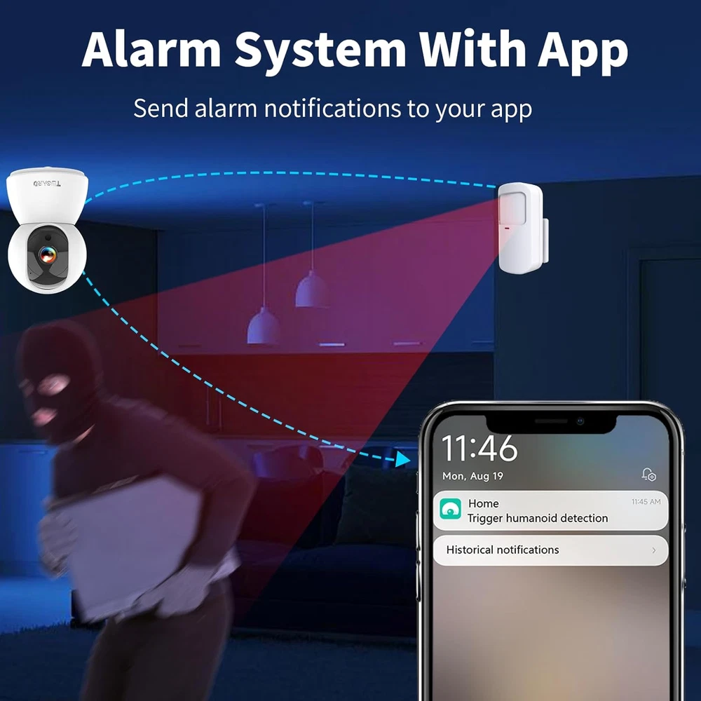 Store New Arrivals Add to Favorite View Feedback Contact Gateway IOT Home Security Alarm System with Camera,Door/Window Sensor,Remote Control SOS Motion Detector Ishome App Alert,Pet Baby Elder Alarm System Camera Monitor Gift Apartment,Office,House,Villa Description Item model number ZX-C23IOT Item dimensions L x W x H 3.07 x 3.07 x 4.92 inches Power Source Corded Electric Battery Cell Composition Alkaline Color White Sensor Technology CMOS Control Method App, Remote Batteries Required? Yes Item Weight 1.32 pounds Connectivity Technology Wi-fi Battery Life 5 years Voltage 110 Volts Recommended Uses For Product Indoor,Home,Jewelry Store,Nursery,Mall,Villa,Apartment,Store,Schools,Factory Warehouse,Shops,Banks,Garage and other important places. Batteries Included? Yes Included Components Door and window detector *1, Power adapter *1, Security camera host *1, Infrared detector *1 Remote control *2 Product Dimensions 3.07 x 3.07 x 4.92 inches Country of Origin China UPGRADE SECURITY ALARM SYSTEM: TUGARD home security camera system indoor with host control can be linked for (up to 32) sub-device management via isHome APP, enhancing home security with advanced IOT pet monitoring system.This home alarm system no subscription saves expenditure for your home. 2.4G WI-FI & INFRARED MOTION DETECTOR: Baby monitor camera for apartment security and audio built-in 8 high-efficiency infrared fill-in lights, you can easily monitor your surroundings on dark nights. Supports 2.4GHz Wi-Fi and Bluetooth, reducing signal interference, faster transmission speeds and more stable connections at the same time. MOTION DETECTION & AUTO TRACKING: The indoor wireless alarm system for home security has a built-in motion sensor that intelligently captures the movement of people or pets. Within the detection area, the dog camera indoor with phone app automatically tracks moving objects and sends real-time alerts to your mobile app, keeping you informed of what's happening in your home. 360° MONITORING & TWO-WAY AUDIO: TUGARD 360 house alarm system with security camera can be remotely adjusted to monitor angles up to 355° horizontally and 90° vertically, and with the manual arming and disarming function, you can take full control WiFi Cameras for Home Security. This indoor home security system alarm camera utilizes cutting-edge technology for two-way audio communication and playback of recorded footage. MULTI-USER SHARING + 0 FEE: TUGARD indoor home security camera allows different family members to easily access and manage home security remotely through the Tuya & Smart Life APP of the user's buddy (shared by up to 5 users), the cameras for home security supports the use of Micor SD card (up to 256GB, not included) for video recording, and you can use the cloud storage to easily manage videos and photos easily using cloud storage. Product Description TUGARD Home Security Camera Alarm System Storage: TUGARD Security Camera and Alarm System Features: 3MP Higher Video Capture Quality for Day and Night: The integrated local language messages can automatically send the alarm information when it is activated. Different Arming Modes: Immediate remote arming, delayed from outside, from home, arming at a scheduled time, remote by telephone. Built-in rechargeable lithium battery, alarm switch-off function. Remote Control: Host arming, disarming, monitoring, intercom and other functions. Requests: the host automatically records all information on alarm events. Additional Functions: The Alarm System Security Camera can be used. One button control; insertion from outside and from home, via remote control and remote via telephone. Question&Answer for the Alarm System & Home Security Camera: Q : Fail to add device during net-pairing? A : If your device only support 2.4GHz Wi-Fi network, please make sure the mobile phone and device are connected to 2.4GHz rounter. Make sure the correct Wi-Fi password is entered. Q : Still fail to add device after re-configuring? A : If fail to add the device, it is recommended to restart the device or power off the device, and try again. Q : The device cannot preview? A : Check for weak Wi-Fi signal. You can place the camera close to the router. If it still doesn't work, reset the device, and add it again. Q : Why the device is still on the list after resetting the device? A : The device resetting only resets the camera's network configuration and cannot change the configuration on the App. You must log in the App to delete the camera from the list. Q : How to connect the camera to another router? A : Log in the App to set the network information. Q : Why the device cannot indentify SD card? A : It is recommended to insert and remove the SD card after power off the device. Check if the SD card is under normal service conditions and the format is FAT32. The App shall suggest "could not find SD card" under unstable network of the mobile phone or the device. TUGARD Security Camera One-Click Sharing Happy Times with Your Family and Friends up to 5 Persons. ABOUT US We offer the best prices around on high quality products. Our E-store includes media such as books, movies, music and games while offering electronics, toys, sporting apparel, clothing, tools, general home, garden items and more. SHIPPING We are always working hard to ensure your package arrives as soon as possible. Please understand that some factors like weather, high postal traffic, and the performance of shipping companies are outside of our control. We offer free shipping to the lower 48 states and ship within 2 business days of payment, usually sooner. We do not accept P.O. Boxes. Please provide a physical address. For shipping outside of the continental USA, we only use eBay's Global Shipping Program.The item is shipped to KY and then sent to the rest of the world. International customers are responsible for all duties and taxes. Continue to check out in order to calculate costs for shipping the item to your country. Messages regarding