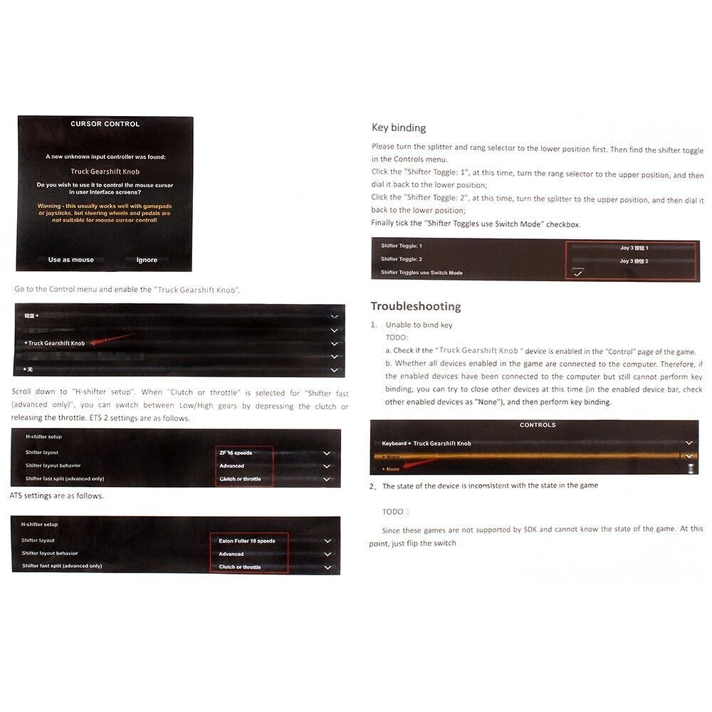 Gear Shift Knob Scania Truck ATS ETS H-Shifter Logitech G25 G27 G29 Fanatec TH8A Gear shift knob from real truck Scania, so materials are very nice to the touch and quality Supports the following devices: for h-shifter Logitech G25/ G27/G29 for Thrustmaster TH8A Benefits: -There are 2 s witches; - Plugs into your computer's USB; - No driver for PC required; - Plug and Play; - Simple and reliable fastening on h-shifter; - Cable length = 1.8 meters. The knob is reccomended for the following games: - Euro Truck Simulator 2 - American Truck Simulator - Bus Driver - Farm Expert - Farming Simulator PACKAGE INCLUDED: 1 x Shift Knob SHIPPING INFORMATION PAYMENT WARRANTY ABOUT US CONTACT US SHIPPING INFORMATION We will only ship this item to buyers by Normal Mail, please confirm your address is correct, and if you want to change the delivery address, just feel free to contact us when you purchase. Usually, we will ship the orders out and upload the tracking number within 1-2 business days(Monday to Saturday from 8:30am-5:30pm) after you complete the payment. PAYMENT We will only accept eBay payment. Please pay using eBay payment ONLY within 7 days from the date of transaction be made. WARRANTY Please inspect your order upon receipt.No damage claims will be honored after 14 days of delivery. All item we sold come with 90 days defective warranty from the date. ABOUT US We are a powerful factory producing auto parts,and we have a professional sales and after-sales team that can provide you with excellent products and services. CONTACT US For any reason you want to contact us,We aim at satisfying every visitor, no matter what kind of situation you meet with, we will be right here to serve you. Please contact our team. If you are happy with the transaction with us, leaving us an ALL-5-STAR positive feedback would be greatly appreciated. Have a good shopping.