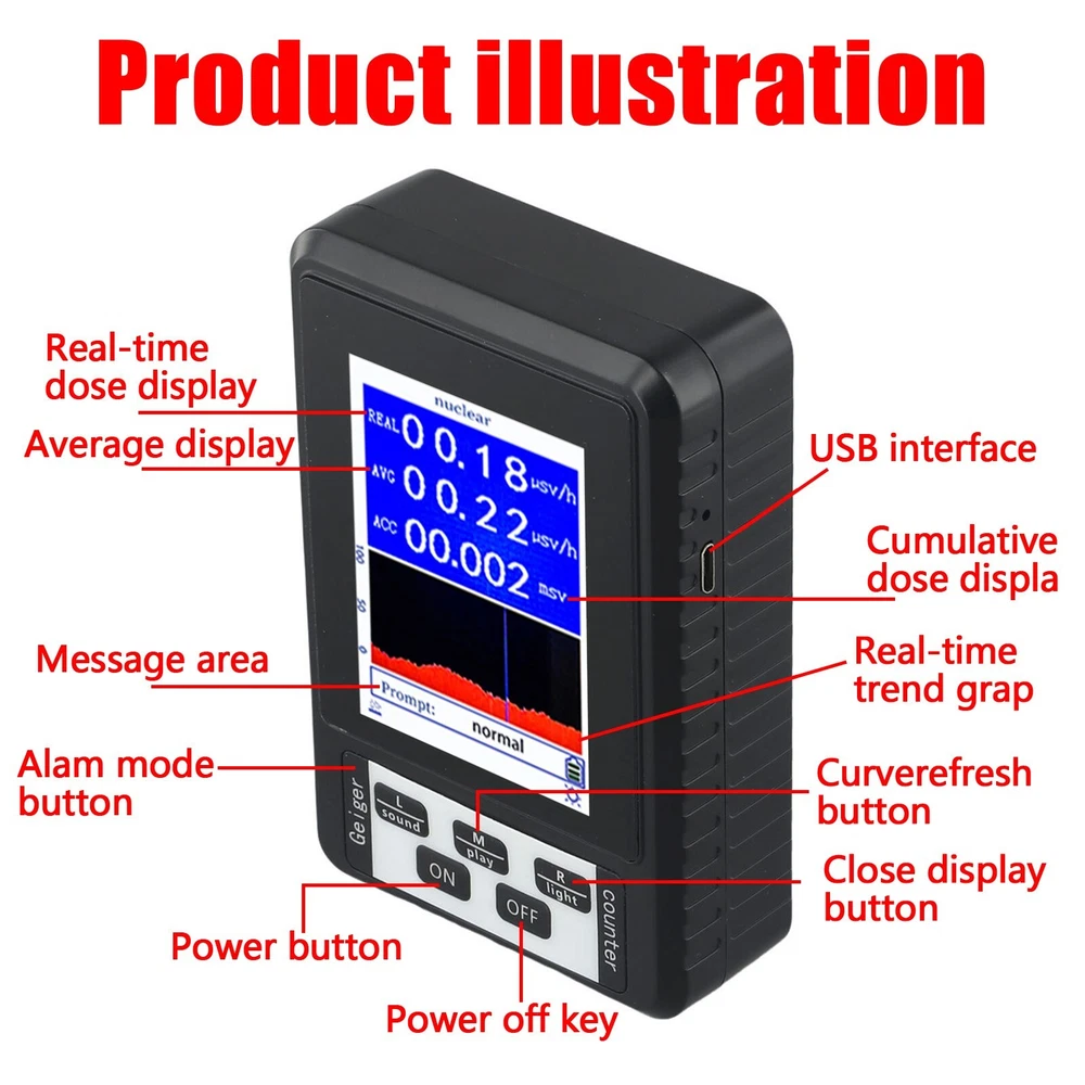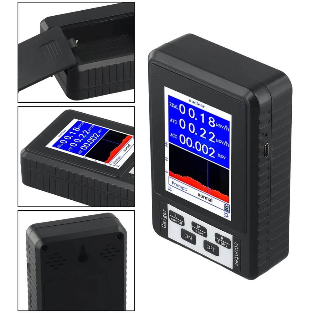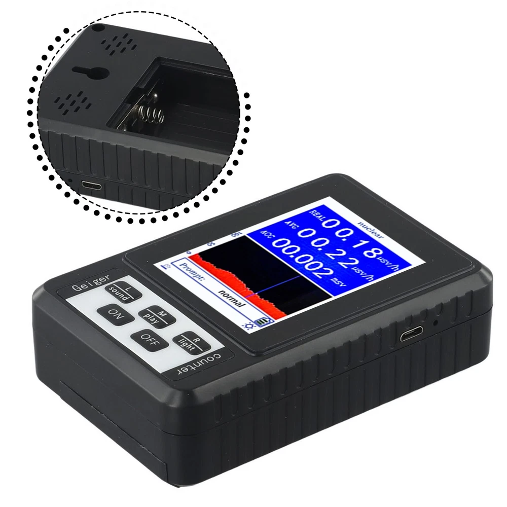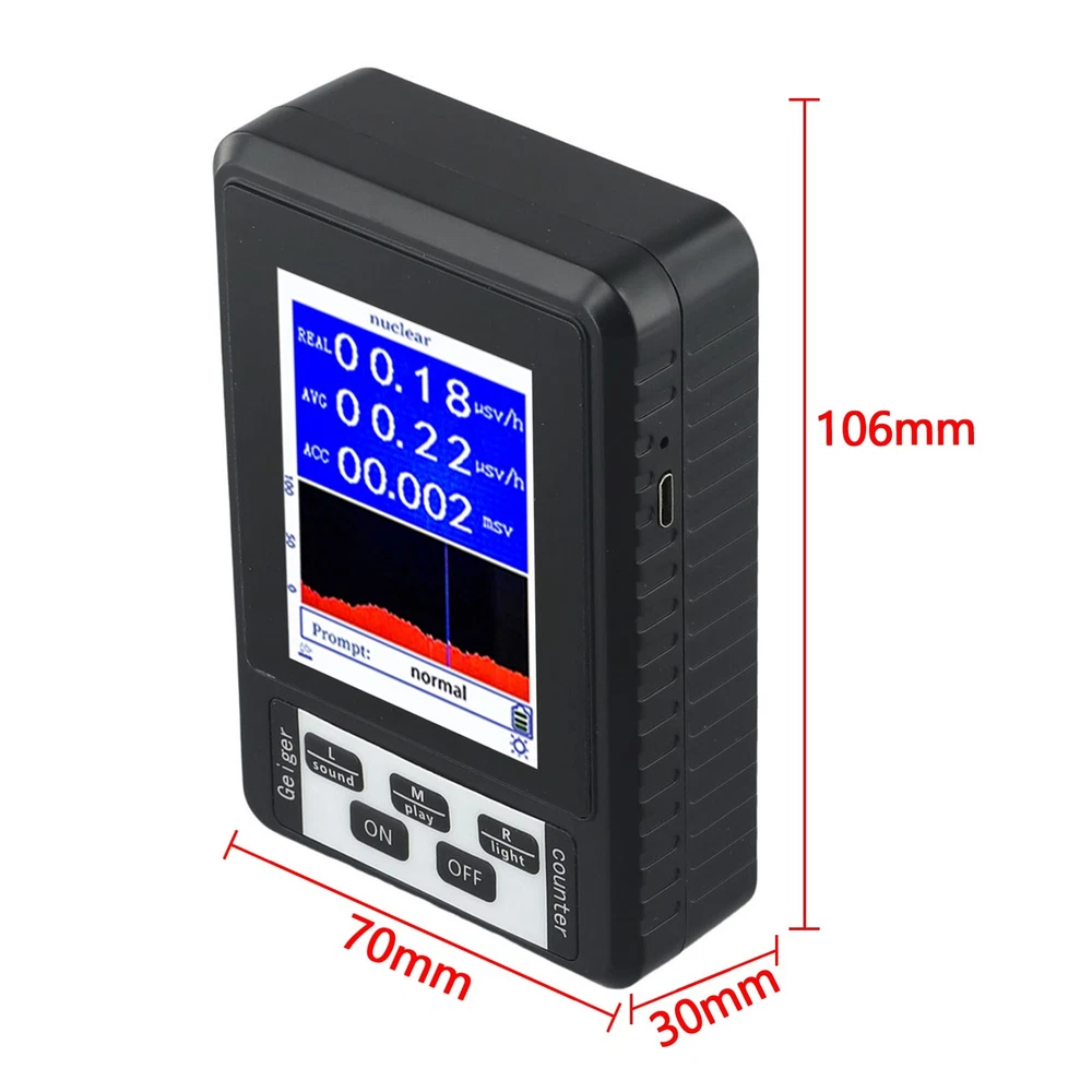 Geiger Counter Radiation Tester with Rechargeable Battery and USB Charging DESCRIPTION Features: * High sensitivity, wide measuring range, long service life. * Smaller body, larger screen, clearer measurement data, easier to operate. * Can be used in material inspection, detection, radiation , radiopharmaceutical screening, etc. * With mute, alarm, particle sound selection button, test, average reset retest selection button, can turn on or off the backlight. * Excessive alarm, cumulative dose and dose rate display. * Automatic saving cumulative dose, built-in memory, power can be stored for a long time. * The 2.8-inch screen automatically displays the test results, and Xiao Bai can understand them without complicated manual calculation. Specifications: Material: ABS Color: Black Screen size: 57*43mm/2.2*1.7in Detectable type: Beta, Gamma, X-Ray Capacity range: 20kev~3.0mev≤±30%(137Cs-) Sensitivity: 80cpm/μsv/(-60) Test accuracy: 0.01μsv/h Real-time range: 0-99.99μsv/h Accumulation: 0-99.999msv Real-time error: ≤10% Average error: ≤3% Battery: 3*AA15V or 3*1.2V rechargeable battery (not included) Charging: USB input 5V 1A Charging time: ≥4 hours Size: 106*70*30mm/4.17*2.8*1.2in Weight: 106g Package Content: 1 x Nuclear radiation detector 1 x User manual Note: 1. The real color of the item may be slightly different from the pictures shown on website caused by many factors such as brightness of your monitor and light brightness. 2. Please allow slight manual measurement deviation for the data. POLICES Shipping Payment WARRANTY We only ship to confirmed ebay Order addresses. Please comfirm that your Order address is in line with your shipping address. Please kindly note that the c ombined shipping is not provided because the shipping fee is calculated by weight. Also, the each additional item means exactly the the same color and size. It takes about 7 -15 working days to US; about 10-30 working days to other countries. Transit time may be a little delayed because of the bad weather and customs inspection . If you do not receive your item within 30 working days since payment finished, please contact us immediately for further assistance. Payment must be completed within 5 days. If you have any problems about payment, please contact us via ebay message. We strive for 100% customer satisfaction! Positive Feedback is very important to us. If you have any questions, p lease feel free to contact us via "Ask seller a question" . We will reply your email within 24 working hours. On Oct 20, 2024 at 08:55:11 PDT, seller added the following information: