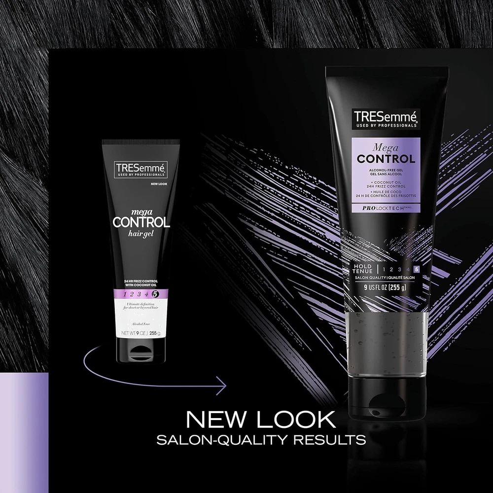 Product Description Tresemme Tres Two, Mega Control, Hair-Gel, for 24-Hour, Frizz Control #5, 9 Ounce (Pack Of 4) TRESemmé Mega Frizz Control Hair Styling Gel, Need a styling gel that delivers mega hold without feeling stiff or sticky? TRESemme Mega Control Hair Gel provides all-day resistance to humidity and keeps your style going strong without crunchy stiffness. After you put the work into your style, you better lock it in before you lose it. Sprays work best to lock in some styles, but when you're aiming for a sleek, tight look, you should use a styling hair gel for extra hold and humidity control. Built for control and ready to be styled, TRESemme Mega Control Hair Gel is an anti-frizz gel, giving you all-day hold with built-in 24-hour humidity protection. This mega control hair gel is perfect for slicking, shaping, or sculpting hair for that perfect look. Our unique, alcohol-free hair gel formula is great for all hair types and designed to keep your hairstyle on lock without leaving hair looking wet or feeling sticky. Step 1: Prep your hair with your favorite TRESemme shampoo and conditioner and hair styling products. TRESemmé Mega Frizz Control Hair Styling Gel, 9 oz MEGA FIRM STYLING HAIR GEL: TRESemmé Mega Control Hair Gel is a styling gel that adds long-lasting shine and mega hold to your hair for all-day control ANTI-FRIZZ GEL: This alcohol-free hair styling gel delivers all-day control with humidity resistance to help keep frizz away MAXIMUM HOLD: TRESemmé Mega Control Hair Gel is a stiff hair gel that locks in your style without ever looking sticky or wet TREND LED, RIGOROUSLY TESTED: Every ingredient is carefully selected to ensure your hair receives the best possible care. We do not test on animals and our hair products are PETA-approved HAIR CARE TIPS FROM OUR STYLISTS: Dispense a quarter-size drop into your hands and use your fingers to evenly coat damp hair, creating your desired style. Add more gel as needed FRIZZ FREE: Formulated with coconut oil, this formula gives all-day hold and 24-hour humidity resistance for resilient styles ALL-DAY HOLD: Level 5 hold, our strongest hold hair gel, is Infused with coconut oil. Achieve moisturized hair without compromising on hold CRUELTY-FREE: TRESemmé prohibits animal testing for our hair products and the ingredients used in them, anywhere in the world DO IT WITH STYLE: With professional quality hair products like our Mega Control Alcohol-Free Gel, you can confidently create your personal style Super firm control. Resistance To Lock Out Frizz And Lock In Style All Day Holds For 24 Hours In High Humidity Mega Firm Control For All Hair Types Product Benefits Humidity Resistant, Frizz Control Hair Type Curly Material Type Free Mineral Oil Free, Sulfate Free, Alcohol Free, Aluminum Free, Formaldehyde Free Scent Unscented Liquid Volume 9 Fluid Ounces Ingredients WATER (EAU), VP/DIMETHYLAMINOETHYLMETHACRYLATE COPOLYMER, PPG-5-CETETH-20, PHENOXYETHANOL, TRIISOPROPANOLAMINE, OLETH-20, CAPRYLYL GLYCOL, CARBOMER, PVP, SORBITOL, FRAGRANCE (PARFUM), PROPYLENE GLYCOL, PEG-12 DIMETHICONE, DISODIUM EDTA, PANTHENOL, COCOS NUCIFERA (COCONUT) OIL, BENZYL ALCOHOL, CITRONELLOL, GERANIOL, HEXYL CINNAMAL, LIMONENE, LINALOOL, EXT. VIOLET 2 (CI 60730).