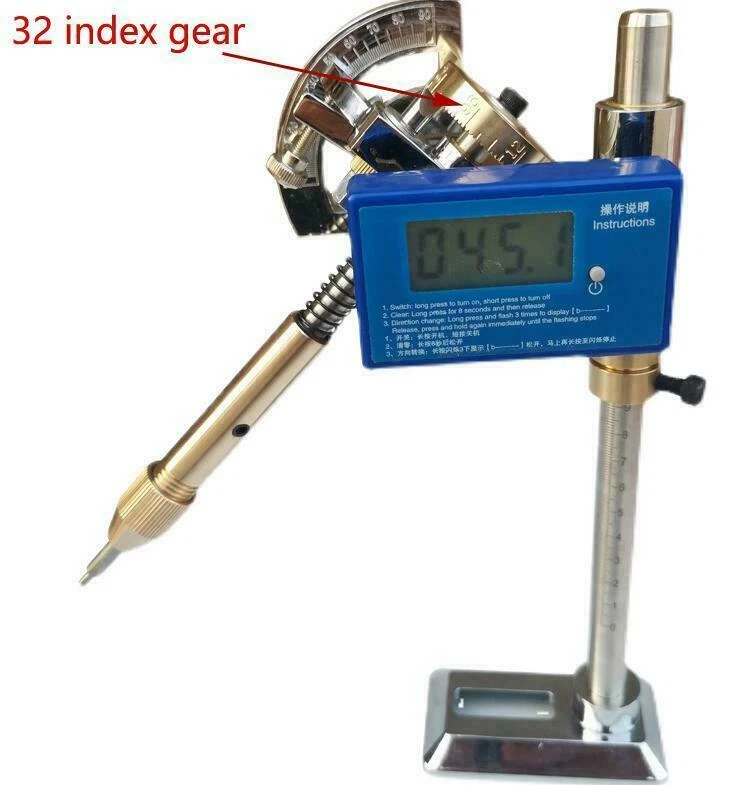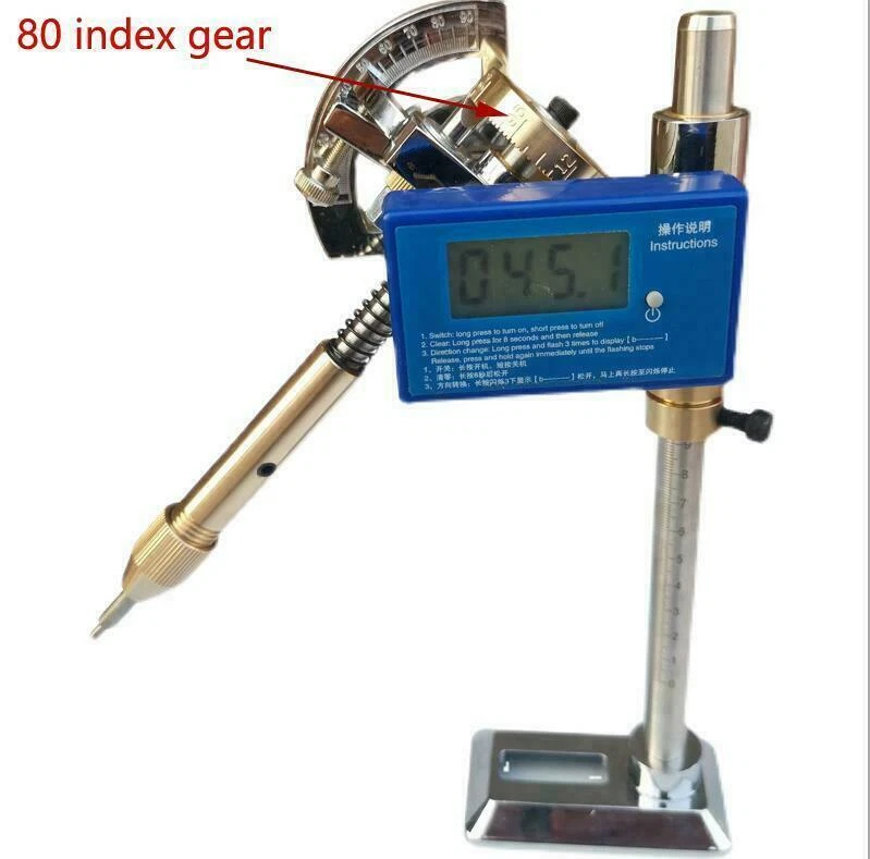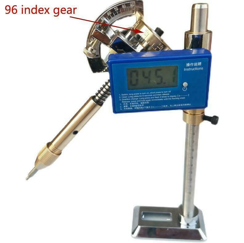 Digital Display Angle Manipulator Gem Faceting Machine Angle Polishing Handle Features: 1. Digital display angle, operation is more precise. 2. With locator. 3. The height can be adjusted. 4. The support rod has a scale. 5. Two power supply methods. 6. Intelligent digital display 0° memory function. 7. A variety of scale indexing gears are available. 8. Quick disassembly and installation 9. Safety foam packaging. Specification: Type: Digital Display Angle Manipulator Power supply: Power adapter OR CR2450 3V button battery (not included) Clamping diameter: 6MM Index Gear: 96/80/72/64/32 Material: stainless steel + copper Application: Suitable for processing all kinds of gemstones and jewellery facets. eBay Cross Border Trade powered by ChannelEffect