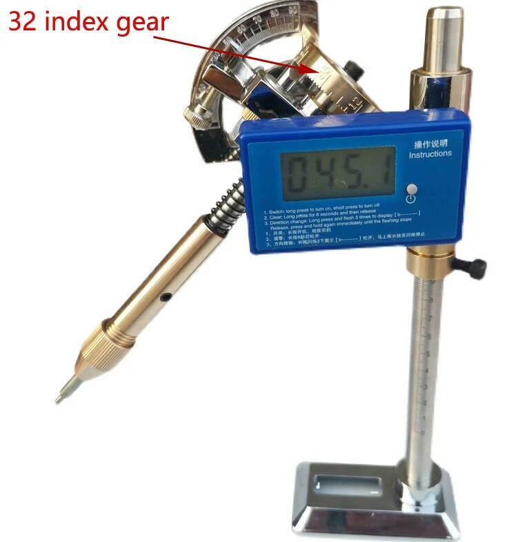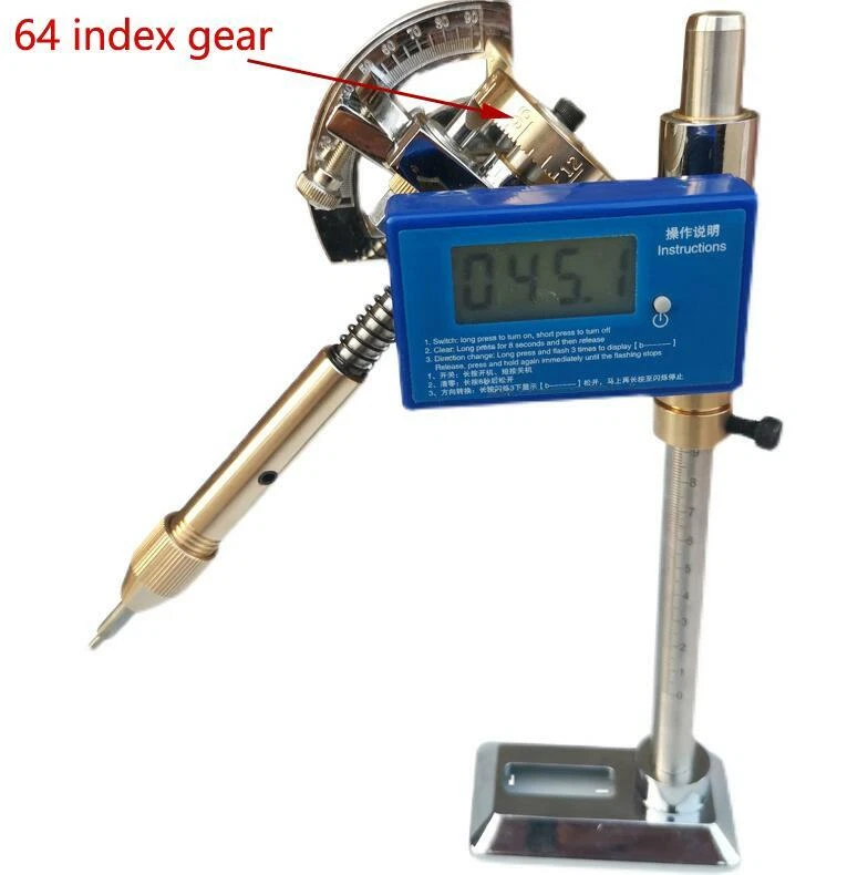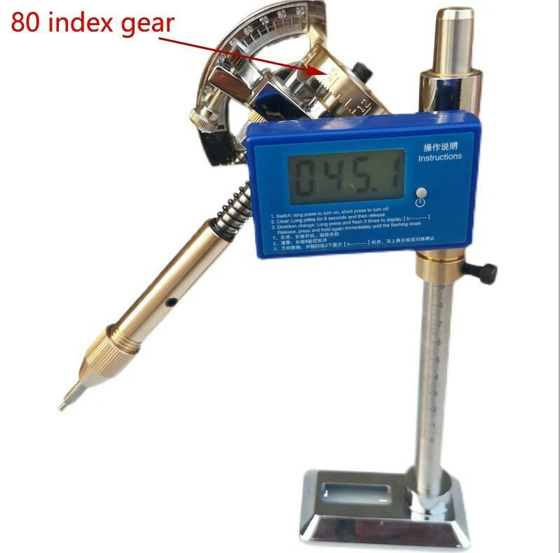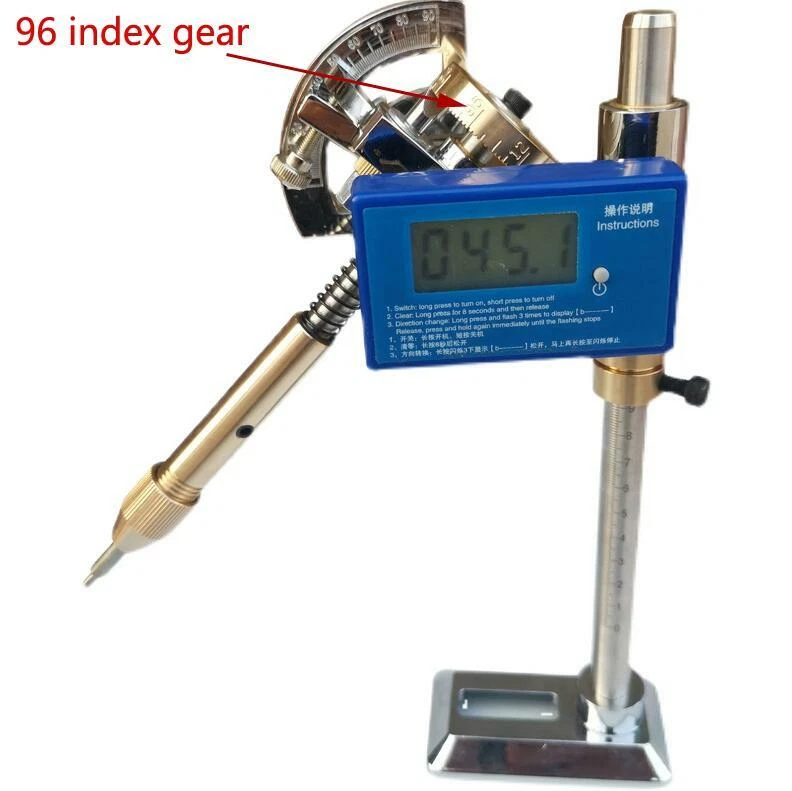 eBay Features: 1. Digital display angle, operation is more precise. 2. With locator. 3. The height can be adjusted. 4. The support rod has a scale. 5. Two power supply methods. 6. Intelligent digital display 0° memory function. 7. A variety of scale indexing gears are available. 8. Quick disassembly and installation 9. Safety foam packaging. Specification: Type: Digital Display Angle Manipulator Power supply: Power adapter OR CR2450 3V button battery (not included) Clamping diameter: 6MM Index Gear: 96/80/72/64/32 Material: stainless steel + copper Application: Suitable for processing all kinds of gemstones and jewellery facets.