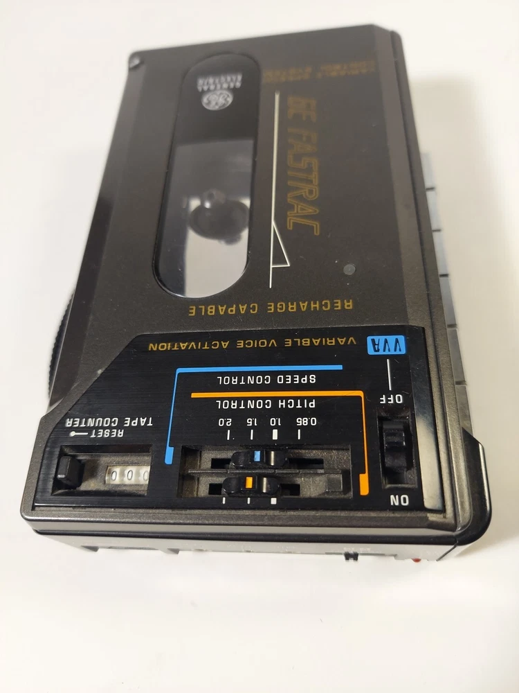 General Electric GE Fastrac Cassette Tape Recorder with 2 blank cassettes, one never opened. I put new batteries in it and everything seems to work well.