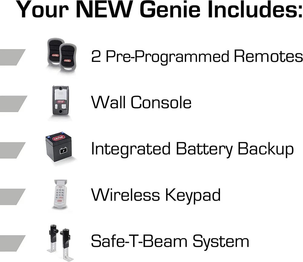 Genie StealthDrive 750 Belt Drive Garage Door Opener 1 1/4 HPc with Battery BackUp The StealthDrive 750 belt drive garage door opener is an ultra-quiet garage door opener with a steel-reinforced belt, making it the ideal choice for homeowners where sound could be an issue. This garage door opener has a powerful DC motor with GenieSense technology standard. For extra safety and added convenience, this Genie garage door opener features an integrated battery backup. That battery backup will power the garage door opener for up to 50 cycles when the main power is out. This transition from home power to running on the battery happens instantly when the main power is out. Like all Genie garage door openers, the StealthDrive 750 comes equipped with Intellicode rolling code technology that prevents unauthorized persons from opening your garage door. This garage door opener includes many accessories for safety and convenience. Included are two pre-programmed 3-button garage door opener remotes, a wireless keypad and a multi-function wall console which provides you with a light control button and a vacation lock. The Genie Safe-T-Beam garage door safety sensors ensure your family’s safety with an infrared beam of light across the door opening. Steel-reinforced belt drive system allows for ultra-quiet yet durable operation. 1 1/4 HPc DC motor will smoothly lift a sectional garage door up to 7' in height and up to 500 lbs. The integrated backup battery operates this garage door opener when your power goes out up to 50 cycles from initial power failure. An extension kit is available (Genie EKTB, 39026R) for 8' high residential garage doors. Easy to install 5-piece tube style rigid rail system snaps together with no special hardware required. Genie's SmartSet programming makes set-up fast and easy with the simple push of a button. For added security and ease of access, this garage door opener includes a wireless exterior keypad. Keep your home safe with state-of-the-art security of Genie Intellicode changes the opener's access code when the remote is used. GenieSense monitoring technology minimizes wear and tear by always monitoring the door. HomeLink + Car2U integration comes standard, no additional hardware required (Genie Exclusive) Safe-T-Beam system keeps your pets and family safe by reversing the closing door if anything passes through the beam. This model includes two pre-programmed 3-button remotes, a wireless keyless keypad, and a multi-function interior wall console. Model 7055-TKV Genie StealthDrive 750 Belt Drive Garage Door Opener 1 1/4 HPc with Battery BackUp The StealthDrive 750 belt drive garage door opener is an ultra-quiet garage door opener with a steel-reinforced belt, making it the ideal choice for homeowners where sound could be an issue. This garage door opener has a powerful DC motor with GenieSense technology standard. For extra safety and added convenience, this Genie garage door opener features an integrated battery backup. That battery backup will power the garage door opener for up to 50 cycles when the main power is out. This transition from home power to running on the battery happens instantly when the main power is out. Like all Genie garage door openers, the StealthDrive 750 comes equipped with Intellicode rolling code technology that prevents unauthorized persons from opening your garage door. This garage door opener includes many accessories for safety and convenience. Included are two pre-programmed 3-button garage door opener remotes, a wireless keypad and a multi-function wall console which provides you with a light control button and a vacation lock. The Genie Safe-T-Beam garage door safety sensors ensure your family’s safety with an infrared beam of light across the door opening. Steel-reinforced belt drive system allows for ultra-quiet yet durable operation. 1 1/4 HPc DC motor will smoothly lift a sectional garage door up to 7' in height and up to 500 lbs. The integrated backup battery operates this garage door opener when your power goes out up to 50 cycles from initial power failure. An extension kit is available (Genie EKTB, 39026R) for 8' high residential garage doors. Easy to install 5-piece tube style rigid rail system snaps together with no special hardware required. Genie's SmartSet programming makes set-up fast and easy with the simple push of a button. For added security and ease of access, this garage door opener includes a wireless exterior keypad. Keep your home safe with state-of-the-art security of Genie Intellicode changes the opener's access code when the remote is uséd. GenieSense monitoring technology minimizes wear and tear by always monitoring the door. HomeLink + Car2U integration comes standard, no additional hardware required (Genie Exclusive) Safe-T-Beam system keeps your pets and family safe by reversing the closing door if anything passes through the beam. This model includes two pre-programmed 3-button remotes, a wireless keyless keypad, and a multi-function interior wall console. Model 7055-TKV × × × × × × × × × × × × Buy now and save! Shipping info Click the Shipping & Payments tab above the listing description for more info Click the Shipping & Payments tab above the listing description for more info! Additional delivery notes PICK UP OPTION Sorry, our items are NOT available for pick-up. PAYMENT Immediate payment is required upon selecting "Buy It Now" or upon checking out through the cart. We accept payment via U.S. PayPal accounts and all Major Credit Cards, Debit Cards & Google Pay. We are legally required to collect sales tax in those states and localities where we maintain a physical presence (nexus). The applicable amount of sales tax charged to an order will be calculated based on the shipment destination's state and local sales tax laws. Thank you for shopping with us on eBay! Additional Information No additional information at this time Ask seller a question You might also like Low Temp Lubricant (10oz t