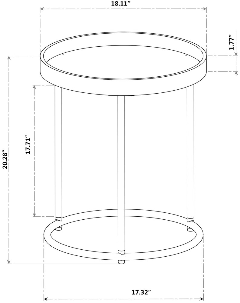 Genoa Round Tray Table with Metal Frame, Espresso The table features a round tray top Table top is made of ply wood, frame is made of sturdy iron for long lasting Table top is finished in espresso, the frame is finished in shiny gold Dimensions: 18. 11"W x 18. 11"D x 20. 28"H. Table top: 18. 11"W x 18. 11"D; Table base: 17. 32"W x 17. 32"D. Tray table top height: 1. 77". Table leg height: 17. 71" Some assembly required, all parts and instructions included. Photo may slightly different from Actual Item in Terms of color due to the Monitor's display Included Components: End Table SHIPPING Domestic Buyers - We have confidence in our products, but if you are not fully satisfied please contact us within 30 days of purchase and you will get full refund. - We ship within 3 business days of payment, usually sooner - We offer FREE shipping on all orders! - We only ship to the lower 48 states, no APO/FPO addresses or PO Boxes allowed International buyers – please note: Import duties, taxes, and charges aren't included in the item price or postage cost. These charges are the buyer's responsibility. - Please check with your country's customs office to determine what these additional costs will be prior to bidding or buying. * Order Cancellation Policy ** You can return a product for up to 30 days from the date you purchased it. 1. The seller reserves the right to cancel the special case only due to eBay cancellation fee. 2. The decision of seller is the final. 3. The seller will respond to the cancellation request within 2 business days. Please wait for the result of cancellation. 4. In case the cancellation is not completed by some reasons, the buyer can follow the options below to get the refund. 4.1 The buyer can reject the item when it arrives. 4.2 The buyer can send the item back to the seller within 30 days If the buyer receives item (USA Shipment ONLY). The seller will provide the FREE return label to the buyer when the buyer opens " Return Item" case on eBay by using the reason as "Change my mind" ONLY. 5. When buyer has placed the order. The order will be processed and completed by automatic warehouse system within 5 minutes. In case that buyer sends the cancellation request after 5 minutes of placing the order, the request will be rejected. **Sending direct message to cancel the order is not allowed for every case.* Return Policy For the return case - If buyer would like to return the items for refund or replacement, please CONTACT SELLER to receive the free return label from seller. The refund or replacement will be processed with the tracking number of return label which is provided by seller only. The other ways of return which are not approved by seller will not be processed for the refund or replacement.