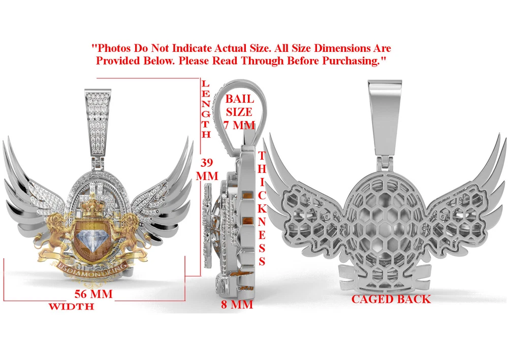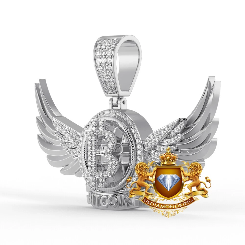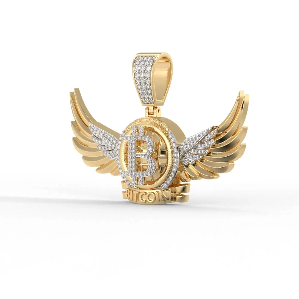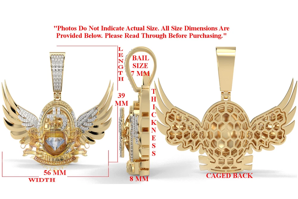Real Genuine Authentic 1.50 Cwt. VVS/1 Certified Tested MOISSANITE Diamond 25 Grams Flying Winged Bitcoin Digital Money Cryptocurrency Pendant 10K Gold Over Charm Chain Neckless Set Photos do not indicate actual size. All size dimensions are provided below. Please read through before purchasing." Main Stone : Real Genuine Authentic VVS/1 Vivid Moissanite Diamonds Total Diamond Carat Weight (TCW) : 1.50 Cwt. Diamond Setting : Micro Pave Diamond Shape : Round Brilliant Cut Diamond Clarity : VVS/I Diamond Color : White ( H-I ) Diamond Cut : Very Good Diamond Treatment : Not Enhanced Charm Length : 1.50 Inches ( Including Bail ) Charm Width : 2.25 Inches Charm Thickness : 8 mm Charm Bail : 7 mm (Fit Up To 6 mm Chain) Metal : Genuine Italian Sterling Silver Finish : 10K Gold Finish Chain Style : Franco Chain Length : 24 Inch Chain Width : 1.5 mm Chain Metal : Genuine Italian Sterling Silver Gender : Men's / Women's (Unisex) Total Weight (Charm + Chain) : 25 + Grams (Approximate) Weights are approximate, there may be up to 10% variation in actual item. Back : Caged Condition : Brand New With Tag *** Comes With Complimentary Presentation Gift Box *** RETAIL TAG PRICE : $899.99 OUR WHOLESALE PRICE : $299.99 ITEM # NIK-CUSTOM-3211