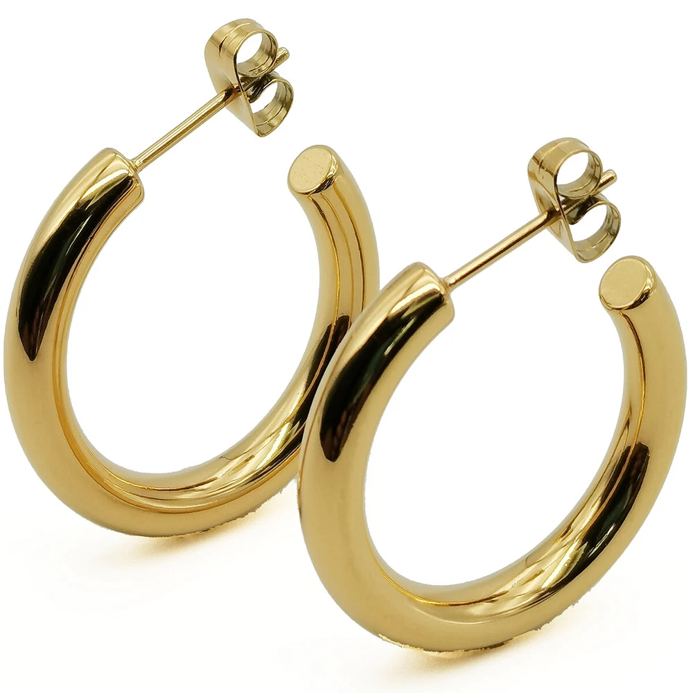 Product Description: This listing is for a pair of 25mm/0.98 inch wide, 4mm thick simply design smooth 18K yellow gold filled round hoop earrings. It is shiny, tarnish-free and hypoallergenic. It's a perfect piece for every situation, every day of the week. They are Hypoallergenic and tarnish-resistant. It does not flake off, lose luster or discolor. It is covered under our 60-day 100% money-back guarantee. *** Free gift box included. Metal 18K Yellow Gold Filled Product Dimension 25mm*25mm / 0.98 inch *0.98 inch, 4 mm thick *** Please always refer to the description for the measurement of the product. Please do not judge the size based on the picture on your screen. The product may look larger or smaller based on your screen size. Weight 9.9 gram Main Color Gold Note Product SKU: B5A_25mm Gold filled jewelry is different from Gold Plated (GP)jewelry. Gold filled jewelry is made by heat and pressure bonding a layer (at least 25 micron thickness) of gold to some base metal core. It has all the great characteristics of solid gold jewelry. It does not flake off, tarnish or discolor. Gold filled jewelry is an economical alternative to solid gold. Gold plated is a method of covering another type of metal with a very thin, almost microscopic (usually 0.5-micron thick), film of pure gold by electroplating it. 18K gold contains 75% pure gold, while 14K contains 58.5% gold and 10K contains 41.7% gold. So 18K yellow gold has a deeper yellow hue than 14K or 10K. 18K rose gold is less blush-colored than 14K/10K. 18K white gold appears quite similar to 14K/10K white gold. *** This is a pair of solid hoop earrings. It is not tube hoop earrings. *** Different people has different palm size. So please always refer to the product description for the measurement of the product size. The hoop may look larger or smaller if it is placed on your palm. Shipping Policy (U.S, APO, FPO, Puerto Rico, Virgin Islands) All products will be shipped from our warehouse in Fremont, California, USA For USA buyers, we will ship your order by USPS (Postal Office) First Class Mail or Priority Mail (Please make your choice when you make payment). We ship within one working day once payment received. Payments received before 1:00PM will be shipped on the same day. We ship to all address, including physical address, P.O. Box address, Puerto Rico, Virgin Islands, Guam, APO, FPO etc. International Buyers We ship to worldwide. Flat Rate shipping to all countries regardless of quantity. For packages of such small size, most countries usually do not charge importing tax. However, in case there is any in importing tax, Please Note: Import duties, taxes, and charges are not included in the item price or shipping cost. These charges are the buyer's responsibility. Please check with your country's customs office to determine what these additional costs will be prior to bidding or buying. Customs fees are normally charged by the shipping company or collected when you pick the item up. These fees are not additional shipping charges. We can not guarantee the exact delivery date for international orders. Customer Service & Return Policy We care about our valued buyers, if you have any questions, our Customer Service staffs will be very glad to help you. We try our best to reply to your emails as soon as possible, however, due to high volume of daily incoming emails and time zone difference, we may not be able to reply your emails immediately. You satisfaction is always our No. 1 concern. Our success is 100% based on your satisfaction and continuous support. No matter for whatever reason, if you are not 100% satisfied, you may always return the product for refund or exchange. Please e-mail us with a brief reason before returning a package. Feedbacks Dear buyers, we appreciate your business, if you are satisfied with our product and service, please leave us a positive feedback. Your recognition will make us more confident to develop business and serve you better. Our goal is to make sure you are a happy buyer and pleasant shopping with us. Please email us before leaving any 1 or 2 ratings, negative feedback or open any dispute. We understand the concerns and frustrations you might have, and will do our endeavor to resolve the issues. Please give us the opportunity to resolve any problem. For international buyers, when you rate the shipping time part please take international transit into consideration.