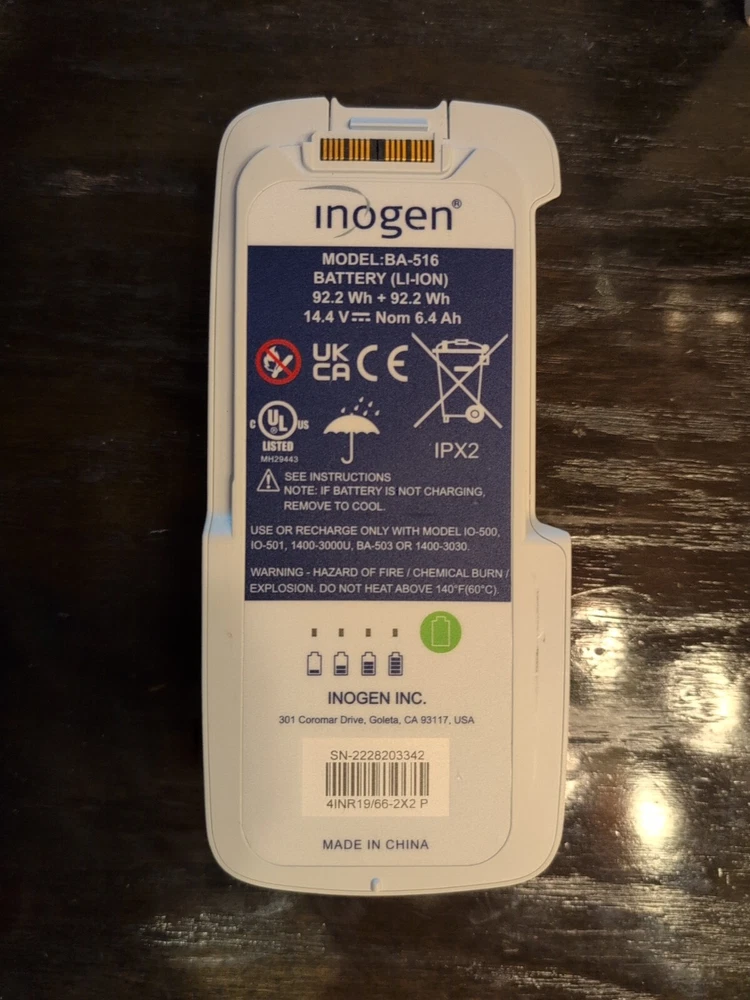 The Inogen G5 and Rove 6 portable oxygen concentrator is a vital medical device that requires a reliable power source. This genuine 92.2Wh BA-516 16-cell large double battery is the perfect replacement or backup power supply for your device. It has a chemical composition of Li-Ion and a voltage of 14.4V. The battery capacity is 92.2Wh/6.4Ah, which provides long-lasting power to your oxygen concentrator. This rechargeable battery is compatible with the Inogen G5 and Rove 6 models, making it an excellent choice for medical professionals and patients who require a reliable power source for their portable oxygen concentrator.