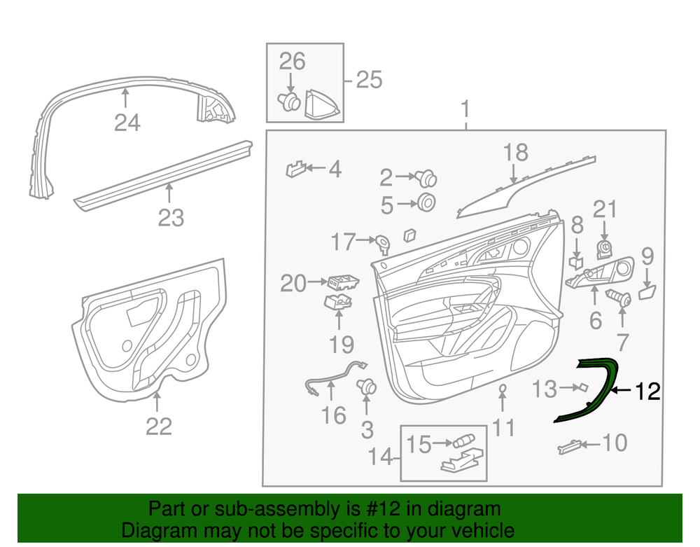 VRAY-GMC Genuine Cocoa Driver Side Interior Front Door Handle Bolt Finish Cap 13277362 Part can be found as # 12 in the diagram above Product Description Cashmere. Installed in your vehicle for a finished appearance This GM Genuine Part is designed, engineered, and tested to rigorous standards and is backed by General Motors Collision parts are designed to help promote proper and safe repair Specifications Brand GM Manufacturer Part Number 13277362 SKU 13277362 Product Genuine Cocoa Driver Side Interior Front Door Handle Bolt Finish Cap 13277362 ONLY PART REFERENCE #12 ON THE DIAGRAM IS INCLUDED WARNING : May cause cancer and reproductive harm. See www.P65Warnings.ca.gov for more info. Terms and Conditions Thank you for shopping with us. Please find our policies below. If you have any other questions, please don't hesitate to contact us. Shipping Terms In stock orders ship within 24 hours. Weekend orders will be processed the next business day. If a part is not in stock and must be ordered from the manufacturer, it usually takes 2-3 days to arrive to us and will be promptly shipped to you. Most of the orders are shipped complete within 2-3 business days. A few of the parts ordered from the manufacturer may take up to 5-6 business days to arrive and will shipped to you immediately. Depending upon location, ground shipments usually take 2-7 days. Your order may be shipped Overnight for an additional cost. Oversized shipments will be additional; you will be contacted prior to shipping for approval. We cannot guarantee transit times for ground and oversize orders. Shipping Carrier substitutions may be made at our determination in an attempt to reduce shipping cost to the customer. We do not ship internationally. In the unlikely event that a part has been placed on backorder or discontinued, we will do our best to try and find one for you as quickly as possible. We do not ship COD orders. Return Policy Contact us to arrange for any returns. A copy of the invoice will need to be included with the return. Parts must be resaleable and in the original packaging. We cannot take back used parts. We cannot take back installed or tried parts. Electrical parts are not returnable. We do reserve the right to refuse and return any parts we find have been installed, are used or do not meet the above criteria. Return request need to be within 30 days of receipt. Cancellation Policy An order or a portion of an order may be cancelled up until the time it is shipped and no longer in our possession. Home • Newsletter Signup • Contact Us Copyright © 2025 VRAY-GMC , All rights reserved. Solution by RevolutionParts, Inc. :: Design by OCDesignsOnline