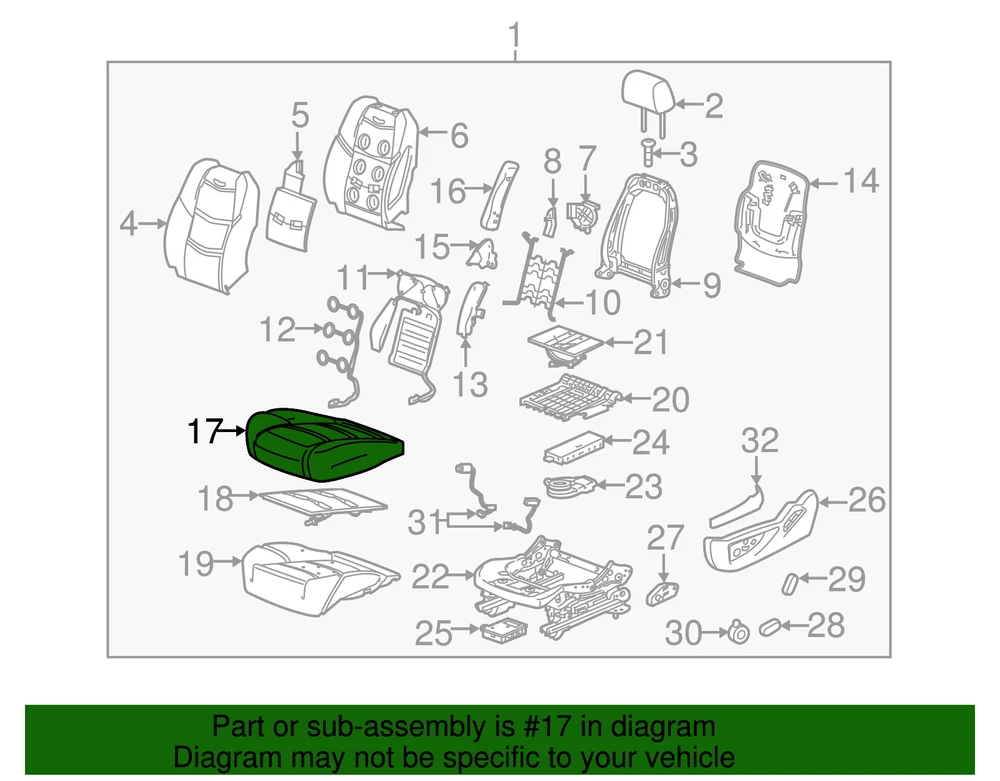 VRAY-GMC Genuine GM Choccachino Driver Seat Cushion Cover 23282792 Part can be found as # 17 in the diagram above Product Description With heated, with ventilation, with massage, choccachino, 2nd design. Designed for an exact fit to prevent movement on the cushions Available in multiple colors to match the vehicle's interior trim package This GM Genuine Part is designed, engineered, and tested to rigorous standards and is backed by General Motors Collision parts are designed to help promote proper and safe repair Specifications Brand GM Manufacturer Part Number 23282792 SKU 23282792 Product Genuine GM Choccachino Driver Seat Cushion Cover 23282792 Replaces 23131647 ONLY PART REFERENCE #17 ON THE DIAGRAM IS INCLUDED WARNING : May cause cancer and reproductive harm. See www.P65Warnings.ca.gov for more info. Terms and Conditions Thank you for shopping with us. Please find our policies below. If you have any other questions, please don't hesitate to contact us. Shipping Terms In stock orders ship within 24 hours. Weekend orders will be processed the next business day. If a part is not in stock and must be ordered from the manufacturer, it usually takes 2-3 days to arrive to us and will be promptly shipped to you. Most of the orders are shipped complete within 2-3 business days. A few of the parts ordered from the manufacturer may take up to 5-6 business days to arrive and will shipped to you immediately. Depending upon location, ground shipments usually take 2-7 days. Your order may be shipped Overnight for an additional cost. Oversized shipments will be additional; you will be contacted prior to shipping for approval. We cannot guarantee transit times for ground and oversize orders. Shipping Carrier substitutions may be made at our determination in an attempt to reduce shipping cost to the customer. We do not ship internationally. In the unlikely event that a part has been placed on backorder or discontinued, we will do our best to try and find one for you as quickly as possible. We do not ship COD orders. Return Policy Contact us to arrange for any returns. A copy of the invoice will need to be included with the return. Parts must be resaleable and in the original packaging. We cannot take back used parts. We cannot take back installed or tried parts. Electrical parts are not returnable. We do reserve the right to refuse and return any parts we find have been installed, are used or do not meet the above criteria. Return request need to be within 30 days of receipt. Cancellation Policy An order or a portion of an order may be cancelled up until the time it is shipped and no longer in our possession. Home • Newsletter Signup • Contact Us Copyright © 2025 VRAY-GMC , All rights reserved. Solution by RevolutionParts, Inc. :: Design by OCDesignsOnline
