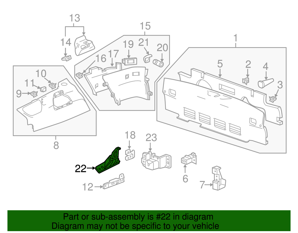 World Parts Direct Genuine GM Jet Black Driver Side Rear Compartment Stowage Tray Clip 22830106 Part can be found as # 22 in the diagram above Product Description Coupe, side & rear trim, roof stow. Helps align and secure the vehicle's trunk floor storage box This GM Genuine Part is designed, engineered, and tested to rigorous standards and is backed by General Motors Collision parts are designed to help promote proper and safe repair Specifications Brand GM Manufacturer Part Number 22830106 SKU 22830106 Product Genuine GM Jet Black Driver Side Rear Compartment Stowage Tray Clip 22830106 ONLY PART REFERENCE #22 ON THE DIAGRAM IS INCLUDED About Us WorldPartsDirect is a small, Texas based business located in the Dallas metroplex. There are about twenty of us that work tirelessly to get you the genuine, OEM parts you need at unbeatable prices. We pride ourselves in top quality customer service and our commitment to be the business we would want to shop with. We have one of the largest inventory networks in the country along with some of the most aggressive discounts. We love cars, and we love what we do! We hope you will love shopping with us , and we always welcome feedback on how we can make your shopping experience even better. Terms and Conditions Compatibility Guarantee (optional free service): Applies when you include your VIN during or before checkout. Simply click "Message to Seller" during checkout and include your VIN with any relevant details (ex: driver/ passenger side). Our fitment experts will confirm compatibility before shipping. If we determine that you purchased an incompatible part, we will correct your order if possible. If we cannot correct your order, we will notify you of the issue (ex: discontinued item) and give you the option to cancel. Part Authenticity and Warranty Guarantee: When you order from us, we guarantee that you will receive a genuine, OEM part. We do not stock anything aftermarket! Our parts are warrantied nationwide for 1 year at every Mopar (Chrysler/Dodge/Jeep/Ram) or General Motors (Chevrolet/Buick/GM/GMC) dealer in the country, depending on the brand of part you ordered. We are able to provide documentation that proves the validity of your purchase from our licensed dealership at anytime upon request. This documentation can be used to redeem this warranty if needed at the dealership of your choice and at no cost to you. Return Policy All of our products can be returned within 30 days. Please open a request for any of these reasons: Doesn't Fit Changed My Mind Found a Better Price Just Didn't Like it Ordered by Mistake The reason you pick has no impact on your refund amount, but it has a big impact on us as a seller. Choosing other reasons may delay the refund per an internal investigation and potential eBay appeal. If a part fails at anytime during the 1 year warranty period, any licensed new car dealership in the country that carries your brand of vehicle will replace the part for free. Simply request our dealer invoice for the part and provide it to your preferred dealer along with the defective part. Home • Newsletter Signup • Contact Us Copyright © 2025 World Parts Direct , All rights reserved. Solution by RevolutionParts, Inc. :: Design by OCDesignsOnline