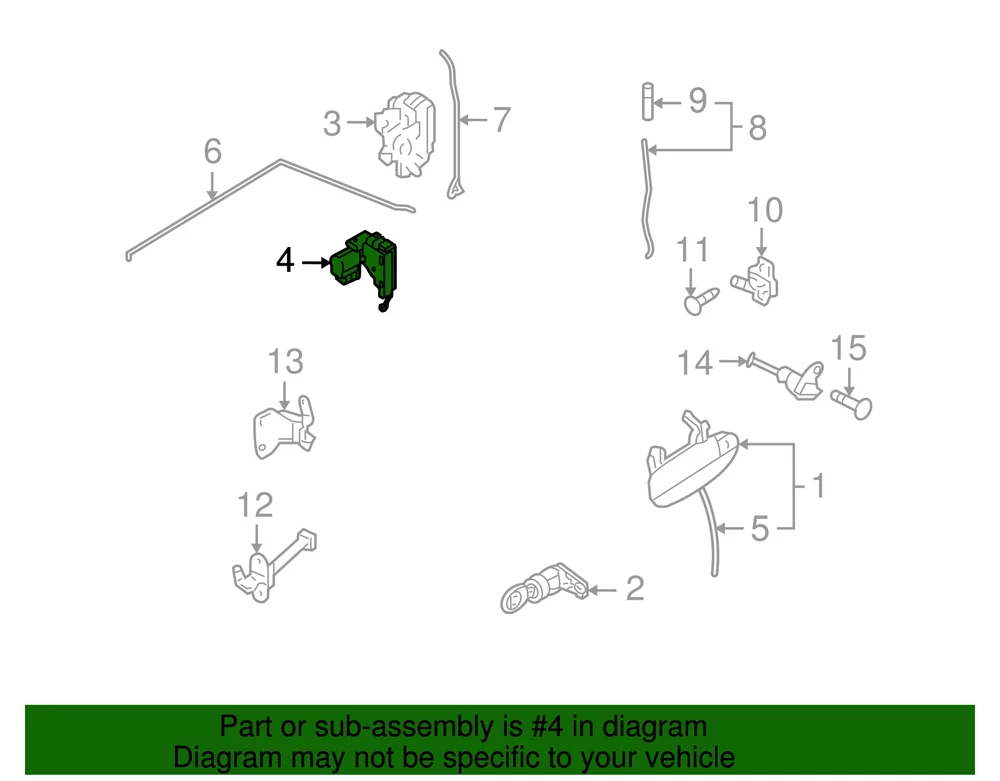 World Parts Direct Genuine GM Front Driver Side Door Lock Actuator 96252707 Part can be found as # 4 in the diagram above Product Description With keyless entry. Aveo. Left. G3. This GM Genuine Part is designed, engineered, and tested to rigorous standards and is backed by General Motors Specifications Brand GM Manufacturer Part Number 96252707 SKU 96252707 Product Genuine GM Front Driver Side Door Lock Actuator 96252707 ONLY PART REFERENCE #4 ON THE DIAGRAM IS INCLUDED About Us WorldPartsDirect is a small, Texas based business located in the Dallas metroplex. There are about twenty of us that work tirelessly to get you the genuine, OEM parts you need at unbeatable prices. We pride ourselves in top quality customer service and our commitment to be the business we would want to shop with. We have one of the largest inventory networks in the country along with some of the most aggressive discounts. We love cars, and we love what we do! We hope you will love shopping with us , and we always welcome feedback on how we can make your shopping experience even better. Terms and Conditions Compatibility Guarantee (optional free service): Applies when you include your VIN during or before checkout. Simply click "Message to Seller" during checkout and include your VIN with any relevant details (ex: driver/ passenger side). Our fitment experts will confirm compatibility before shipping. If we determine that you purchased an incompatible part, we will correct your order if possible. If we cannot correct your order, we will notify you of the issue (ex: discontinued item) and give you the option to cancel. Part Authenticity and Warranty Guarantee: When you order from us, we guarantee that you will receive a genuine, OEM part. We do not stock anything aftermarket! Our parts are warrantied nationwide for 1 year at every Mopar (Chrysler/Dodge/Jeep/Ram) or General Motors (Chevrolet/Buick/GM/GMC) dealer in the country, depending on the brand of part you ordered. We are able to provide documentation that proves the validity of your purchase from our licensed dealership at anytime upon request. This documentation can be used to redeem this warranty if needed at the dealership of your choice and at no cost to you. Return Policy All of our products can be returned within 30 days. Please open a request for any of these reasons: Doesn't Fit Changed My Mind Found a Better Price Just Didn't Like it Ordered by Mistake The reason you pick has no impact on your refund amount, but it has a big impact on us as a seller. Choosing other reasons may delay the refund per an internal investigation and potential eBay appeal. If a part fails at anytime during the 1 year warranty period, any licensed new car dealership in the country that carries your brand of vehicle will replace the part for free. Simply request our dealer invoice for the part and provide it to your preferred dealer along with the defective part. Home • Newsletter Signup • Contact Us Copyright © 2025 World Parts Direct , All rights reserved. Solution by RevolutionParts, Inc. :: Design by OCDesignsOnline