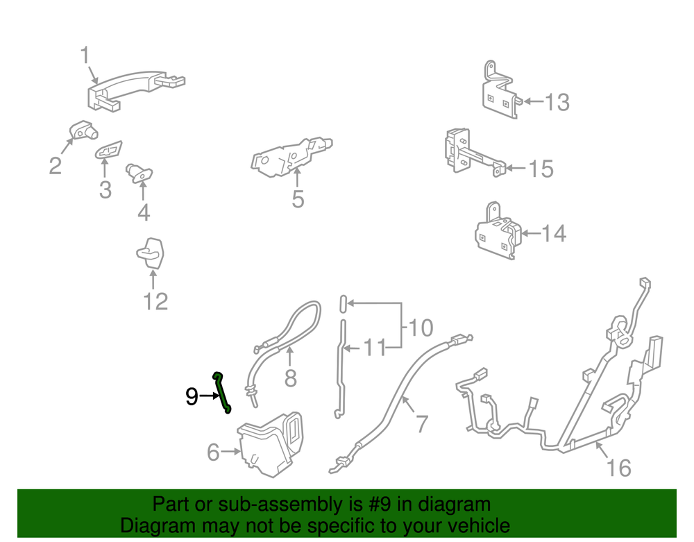 World Parts Direct Genuine GM Driver Side Front Door Lock Cylinder Rod 22978422 Part can be found as # 9 in the diagram above Product Description Lock cylinder. Connects the lock components to the latch assembly, locking and unlocking your vehicle's latch assembly from the striker post This GM Genuine Part is designed, engineered, and tested to rigorous standards and is backed by General Motors Specifications Brand GM Manufacturer Part Number 22978422 SKU 22978422 Product Genuine GM Driver Side Front Door Lock Cylinder Rod 22978422 ONLY PART REFERENCE #9 ON THE DIAGRAM IS INCLUDED About Us WorldPartsDirect is a small, Texas based business located in the Dallas metroplex. There are about twenty of us that work tirelessly to get you the genuine, OEM parts you need at unbeatable prices. We pride ourselves in top quality customer service and our commitment to be the business we would want to shop with. We have one of the largest inventory networks in the country along with some of the most aggressive discounts. We love cars, and we love what we do! We hope you will love shopping with us , and we always welcome feedback on how we can make your shopping experience even better. Terms and Conditions Compatibility Guarantee (optional free service): Applies when you include your VIN during or before checkout. Simply click "Message to Seller" during checkout and include your VIN with any relevant details (ex: driver/ passenger side). Our fitment experts will confirm compatibility before shipping. If we determine that you purchased an incompatible part, we will correct your order if possible. If we cannot correct your order, we will notify you of the issue (ex: discontinued item) and give you the option to cancel. Part Authenticity and Warranty Guarantee: When you order from us, we guarantee that you will receive a genuine, OEM part. We do not stock anything aftermarket! Our parts are warrantied nationwide for 1 year at every Mopar (Chrysler/Dodge/Jeep/Ram) or General Motors (Chevrolet/Buick/GM/GMC) dealer in the country, depending on the brand of part you ordered. We are able to provide documentation that proves the validity of your purchase from our licensed dealership at anytime upon request. This documentation can be used to redeem this warranty if needed at the dealership of your choice and at no cost to you. Return Policy All of our products can be returned within 30 days. Please open a request for any of these reasons: Doesn't Fit Changed My Mind Found a Better Price Just Didn't Like it Ordered by Mistake The reason you pick has no impact on your refund amount, but it has a big impact on us as a seller. Choosing other reasons may delay the refund per an internal investigation and potential eBay appeal. If a part fails at anytime during the 1 year warranty period, any licensed new car dealership in the country that carries your brand of vehicle will replace the part for free. Simply request our dealer invoice for the part and provide it to your preferred dealer along with the defective part. Home • Newsletter Signup • Contact Us Copyright © 2025 World Parts Direct , All rights reserved. Solution by RevolutionParts, Inc. :: Design by OCDesignsOnline