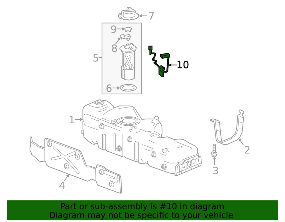 aaronchevrolet Genuine GM Fuel Level Sensor 84715868 Part can be found as # 10 in the diagram above Product Description Silverado, sierra. Without long bed. Tank & mounting, without 8 ft box, e15. Measures fuel level changes displayed on fuel gauge Manufactured to GM OE specification for fit, form, and function Specifications Brand GM Manufacturer Part Number 84715868 SKU 84715868 Product Genuine GM Fuel Level Sensor 84715868 ONLY PART REFERENCE #10 ON THE DIAGRAM IS INCLUDED WARNING : May cause cancer and reproductive harm. See www.P65Warnings.ca.gov for more info. Terms and Conditions Thank you for shopping with us. Please find our policies below. If you have any other questions, please don't hesitate to contact us. Shipping Terms If you are located in Alaska, Hawaii or Puerto Rico Please contact us via eBay email to discuss shipping cost In stock orders ship within 24 hours. Weekend orders will be processed the next business day. If a part is not in stock and must be ordered from the manufacturer, it usually takes 2-3 days to arrive to us and will be promptly shipped to you. Most of the orders are shipped complete within 2-3 business days. A few of the parts ordered from the manufacturer may take up to 5-6 business days to arrive and will shipped to you immediately. Depending upon location, ground shipments usually take 2-7 days. Your order may be shipped Overnight for an additional cost. Oversized shipments will be additional; you will be contacted prior to shipping for approval. We cannot guarantee transit times for ground and oversize orders. Shipping Carrier substitutions may be made at our determination in an attempt to reduce shipping cost to the customer. We do not ship internationally. In the unlikely event that a part has been placed on backorder or discontinued, we will do our best to try and find one for you as quickly as possible. We do not ship COD orders. Return Policy Contact us to arrange for any returns. A copy of the invoice will need to be included with the return. Parts must be resaleable and in the original packaging. We cannot take back used parts. We cannot take back installed or tried parts. Electrical parts are not returnable. We do reserve the right to refuse and return any parts we find have been installed, are used or do not meet the above criteria. Return request need to be within 30 days of receipt. Cancellation Policy An order or a portion of an order may be cancelled up until the time it is shipped and no longer in our possession. Home • Newsletter Signup • Contact Us Copyright © 2024 aaronchevrolet , All rights reserved. Solution by RevolutionParts, Inc. :: Design by OCDesignsOnline